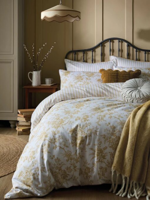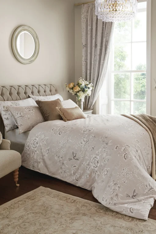 Rowsham, elegante, blomstrete sengesett i naturtoner.