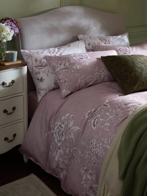 Rowsham, elegant, blomstrete sengesett i dyp rosa bomullssateng