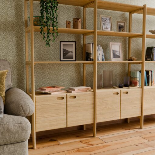 Møblene i serien er gjennomtenkt utformet med fleksible løsninger, som justerbare hyller og moderne dører med dempet lukking, og gir mulighet for uendelige kombinasjoner – for eksempel med Hazlemere Single Bookcase Extension, som kan festes til eksisterende bokhyller for å skape en hel vegg med stilige og funksjonelle oppbevaringsløsninger.