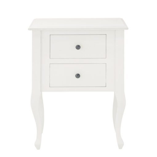 Rosalind, romantisk nattbord i bomullshvit med to skuffer