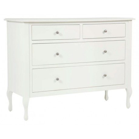 Rosalind, romantisk kommode med fire skuffer i bomullshvitt