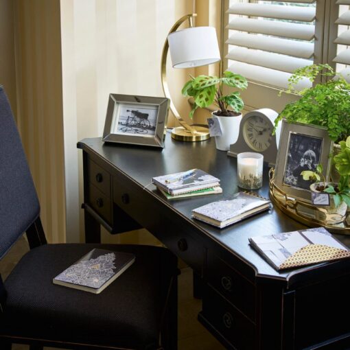 Vårt møbelsortiment inneholder et mangfold av design, så også når det kommer til våre sminkebord og skrivebord. De finnes i flere utførelser, tresorter og farger.