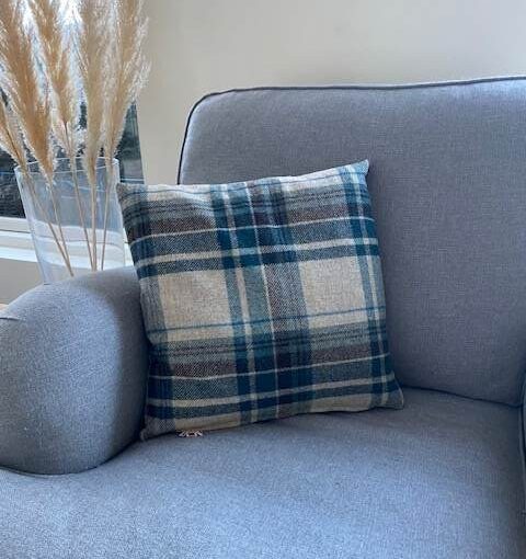 Mulholland, klassisk ullpute i rutet mønster i blåtoner