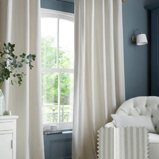Cornish, Chenille Stripe Natur Ferdigsydde gardiner