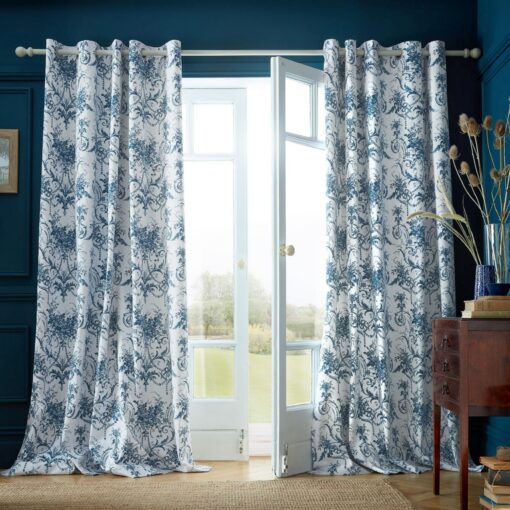 Tuileries i midnattsblått m/maljer Ferdigsydde gardiner