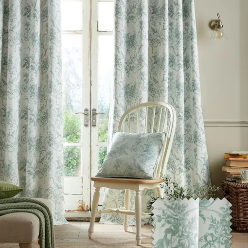 Tuileries i salvie grønn m/maljer Ferdigsydde gardiner