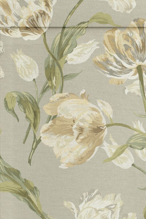 Gosford, elegant gardinstoff med tulipaner i salviegrønt