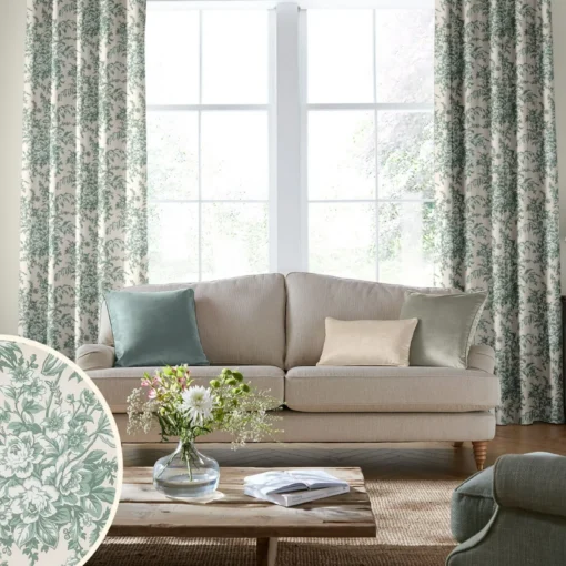 Picardie, floralt gardinstoff i salviegrønt