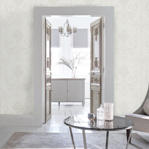 Josette, hvit tapet med damaskmønster i perlemor