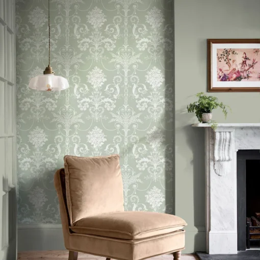 Josette, damaskmønstret tapet i duck egg