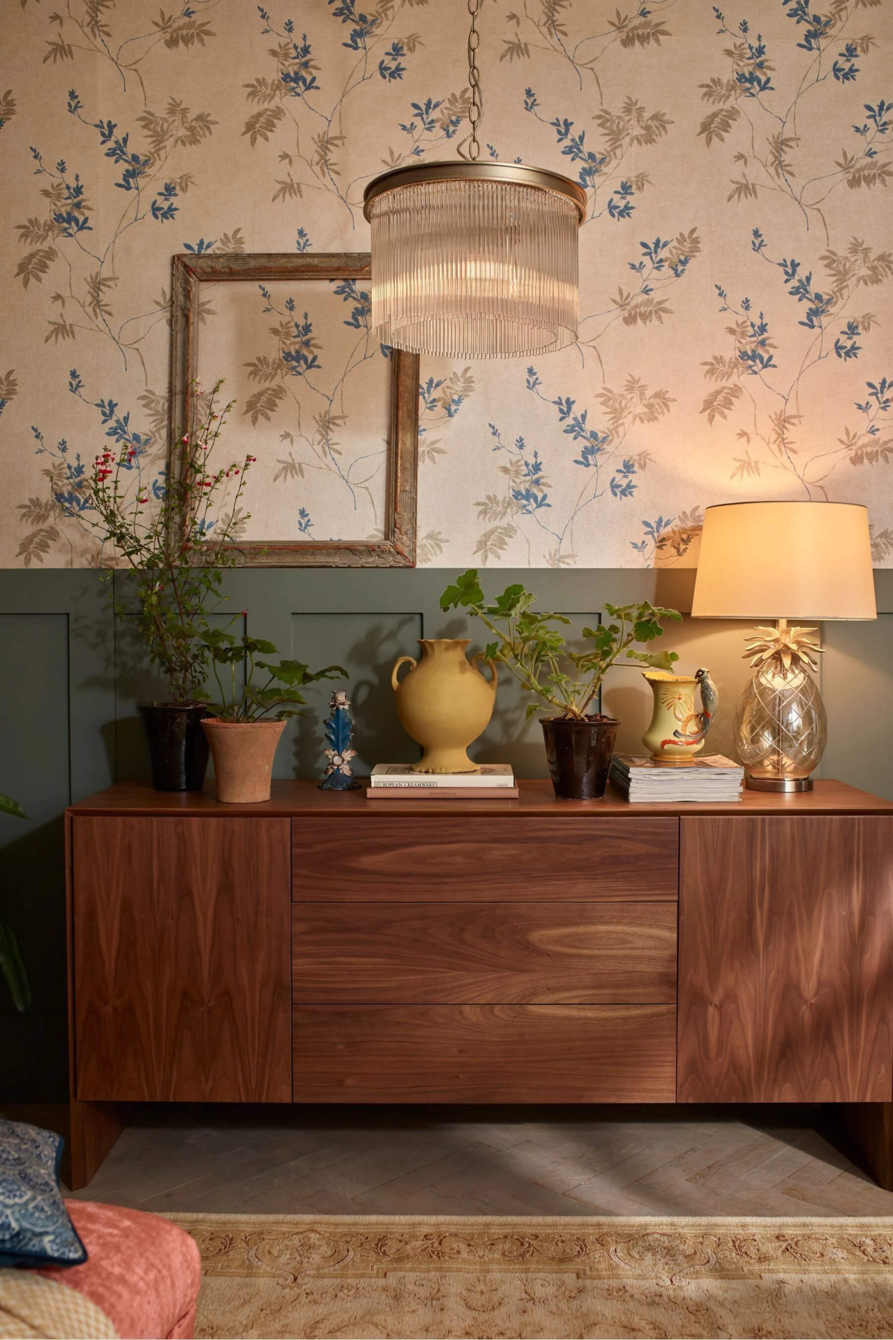 Laura Ashley Ammanford skjenk i valnøtt er et stilrent og moderne oppbevaringsmøbel med subtile, gjennomtenkte detaljer. Designet kombinerer minimalistiske linjer med raffinert håndverk, og gir rommet et sofistikert uttrykk.