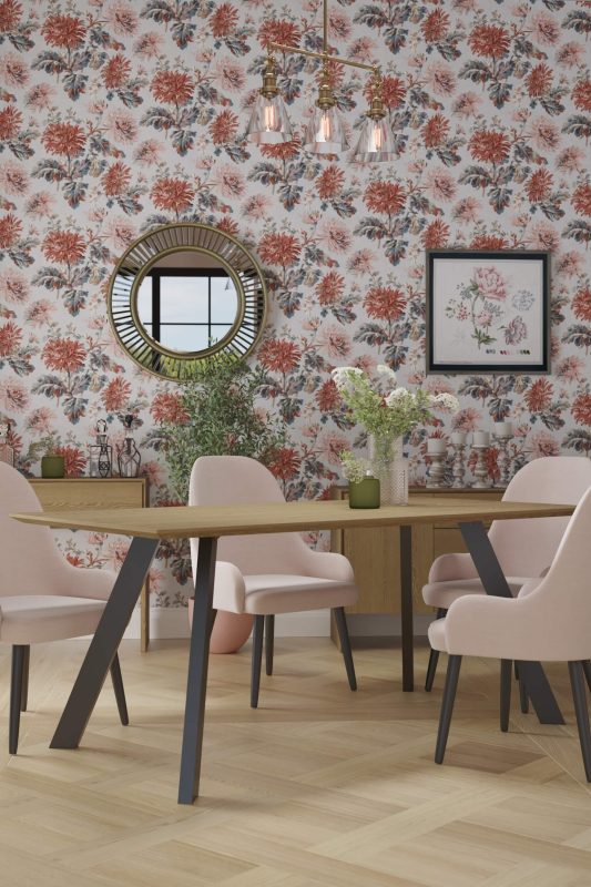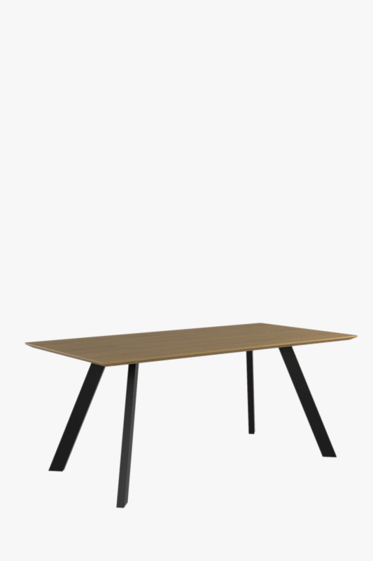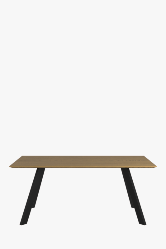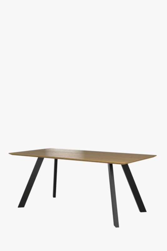 Både moderne og slående, Ammanford spisebord vil være midtpunktet i enhver spiseplass. Den finerte toppen har en avfaset kant rundt hele omkretsen som er sidestilt med de svarte stålbena som sprer seg i motsatt retning. Den sjenerøse størrelsen vil komfortabelt romme opptil åtte gjester for uformell eller formell middag.