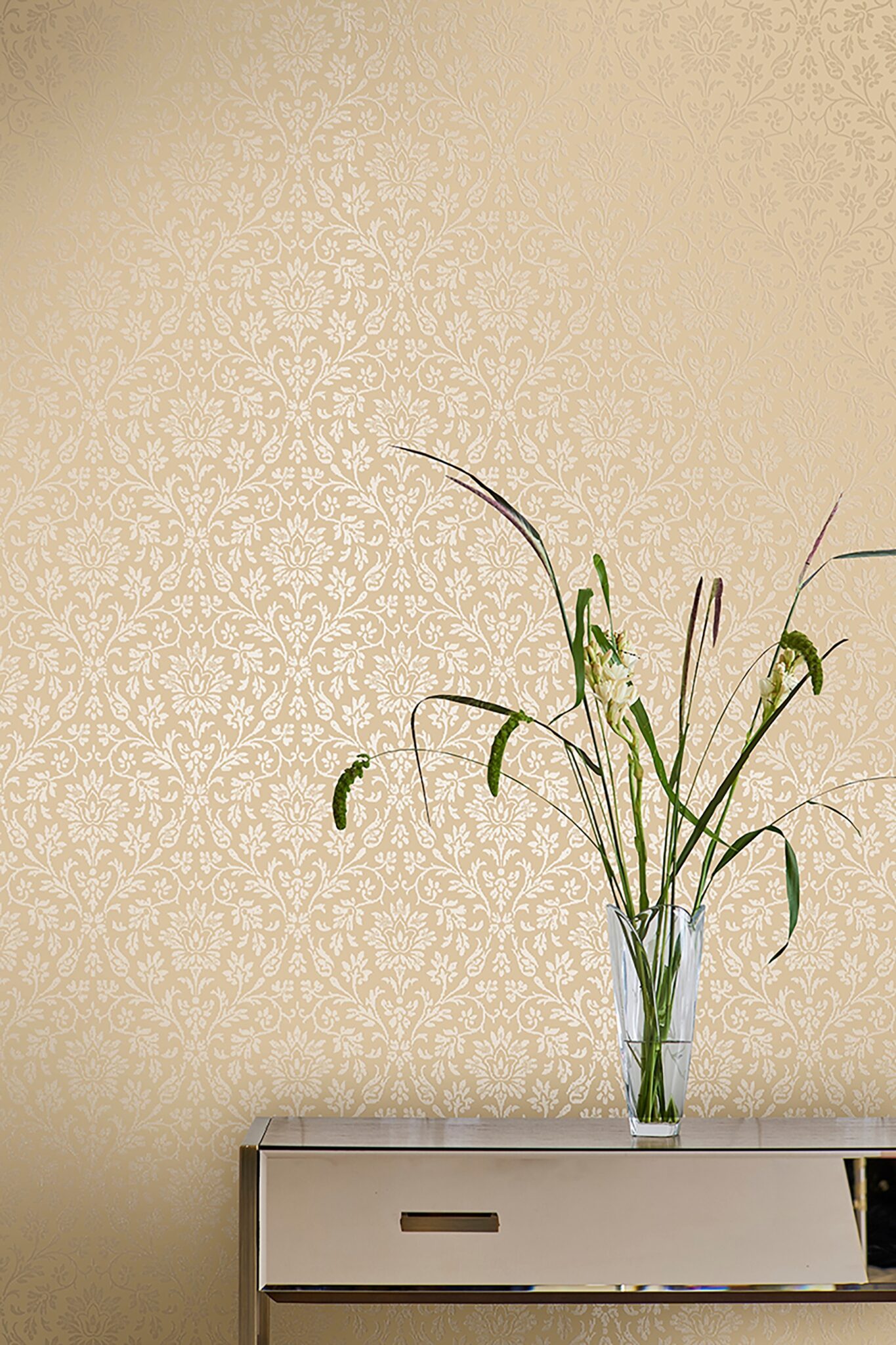 Annecy, er et tidløst og klassisk damaskmønstret tapet, det er elegant og raffinert og gir et subtilt uttrykk, her med linfarget bunn.