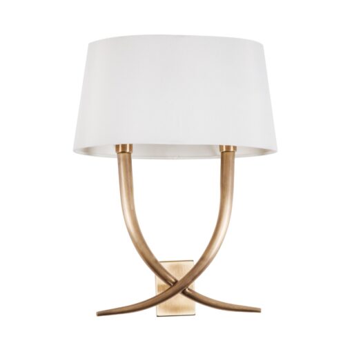 Lampen er utstyrt med doble pæreholdere som gir godt og balansert lys, og passer like godt i stuen, på soverommet eller i en gang. De karakteristiske horndetaljene, inspirert av kolonitiden, tilfører lampen et subtilt historisk preg og en dekorativ detalj som gir karakter til rommet.