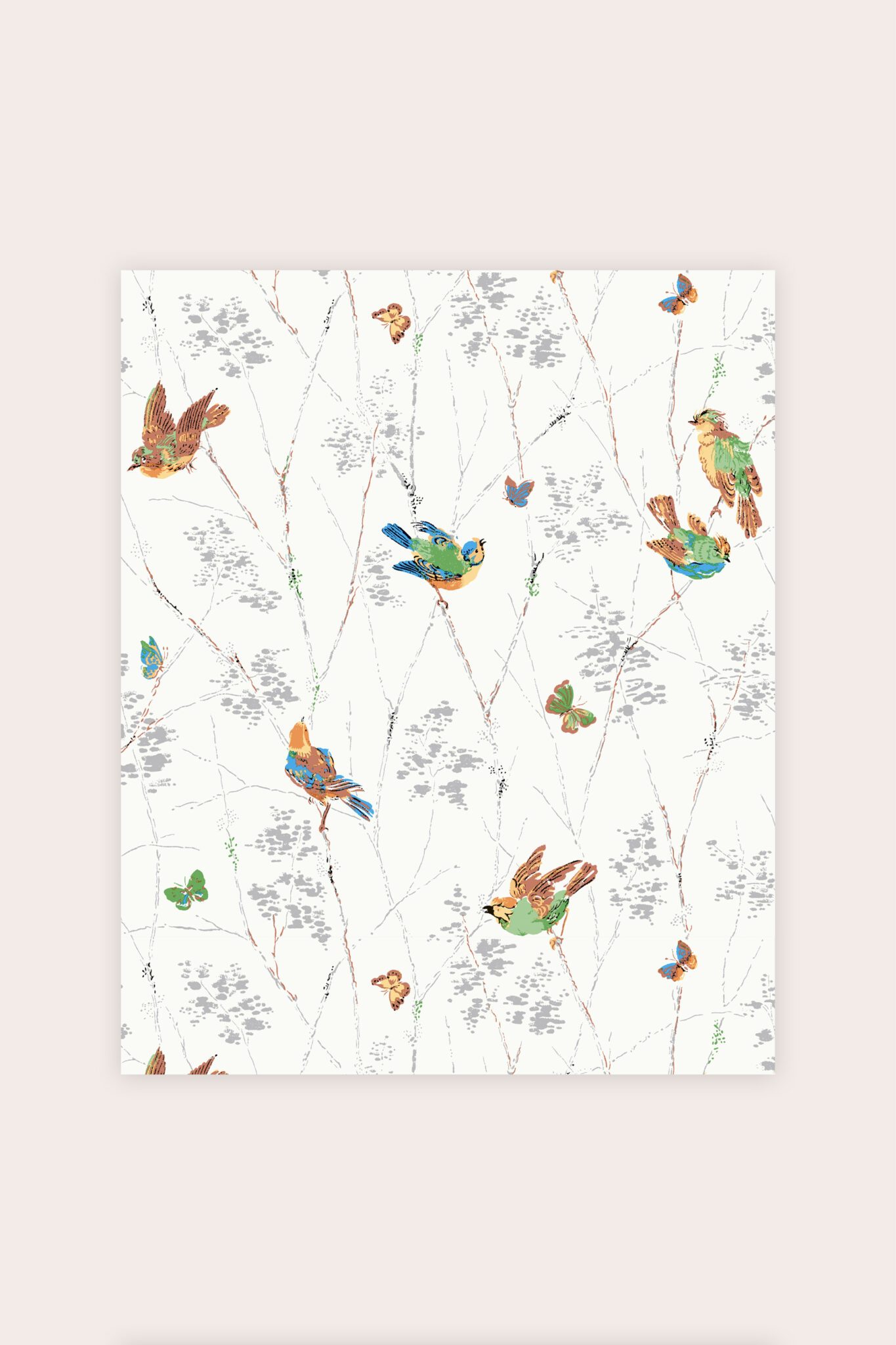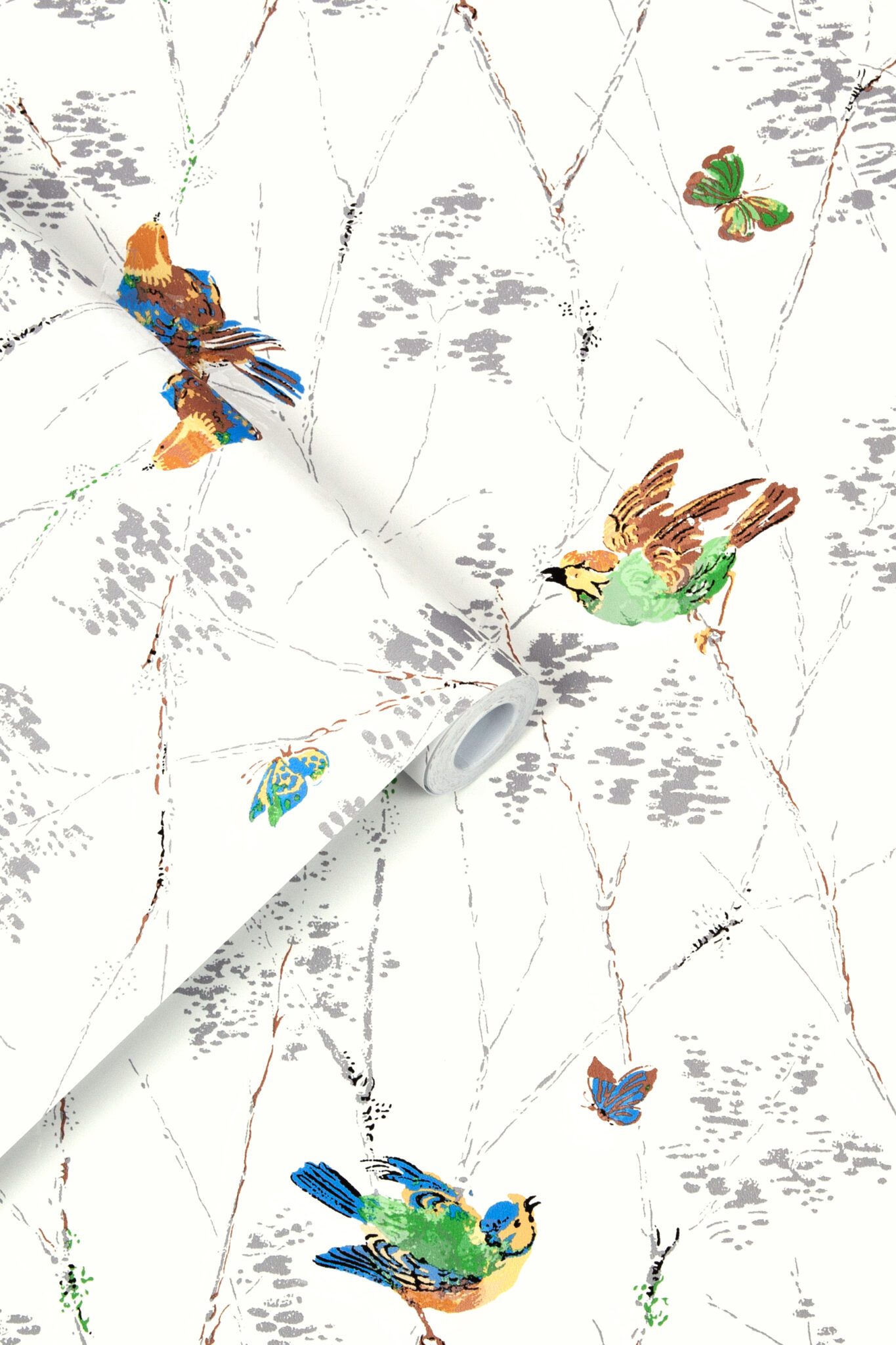 Tidløs og fargerik tapet, Aviary, tapet med fargerike fulger, som en tidlig morgen på den engelske landsbygda, er dette en tidløs tapet som varer.