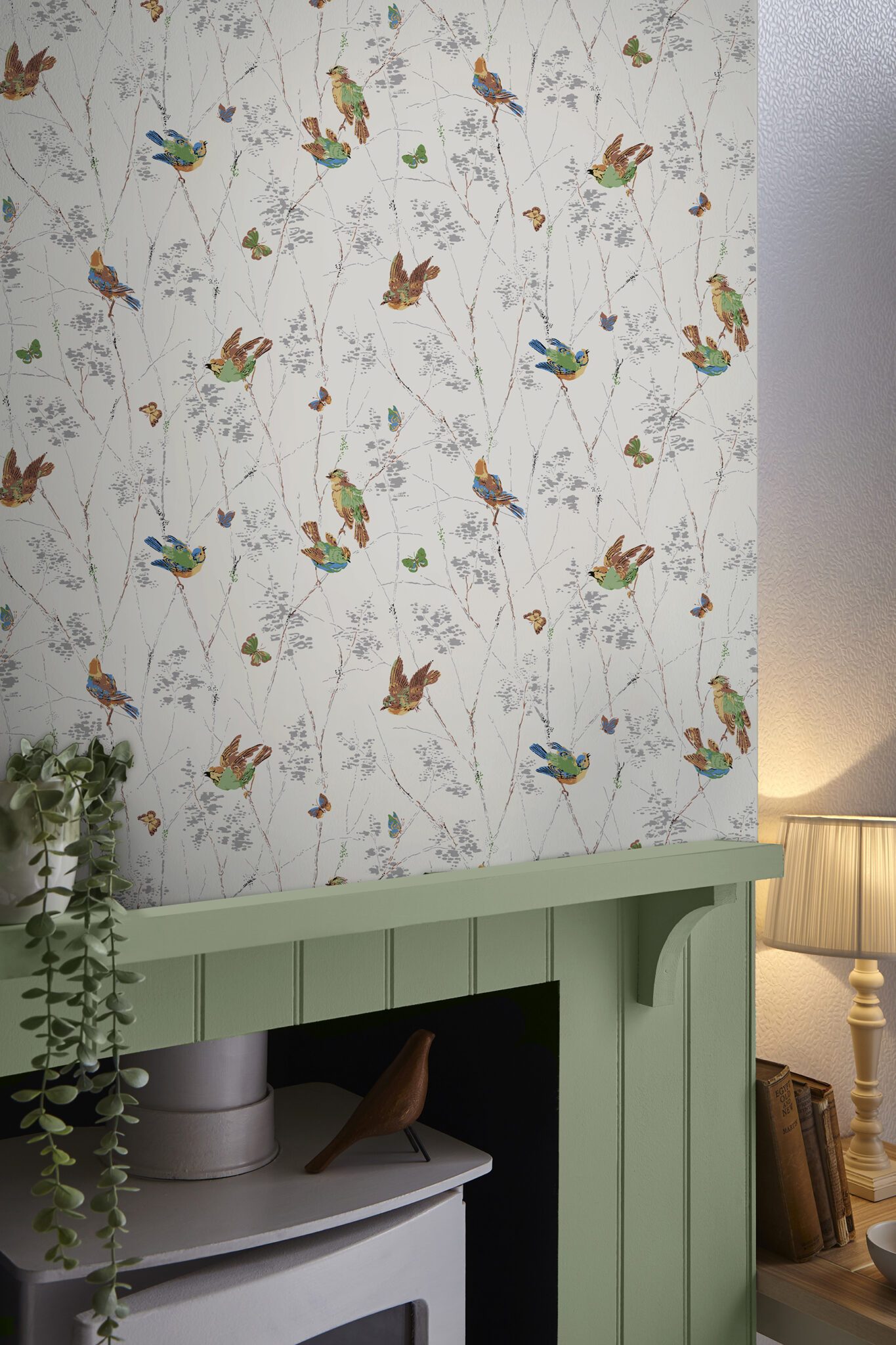 Charming and conversational, this fresh design evokes the feeling of an early morning in the British countryside. Featuring birds and butterflies parading across branches and dappled leaves, this natural look will stay timeless season after season