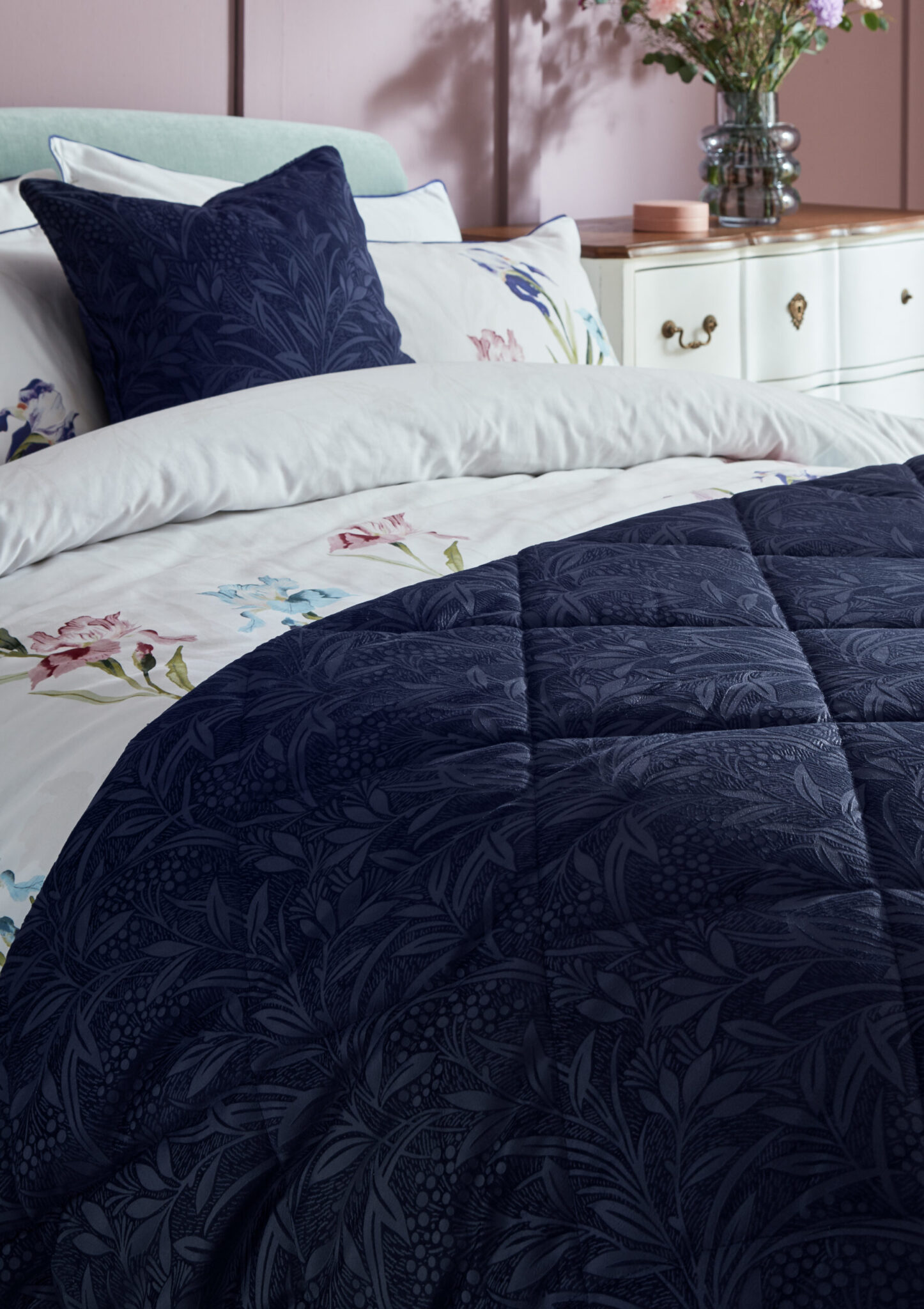 Barley, elegant sengeteppe i preget midnattsblå fløyel.