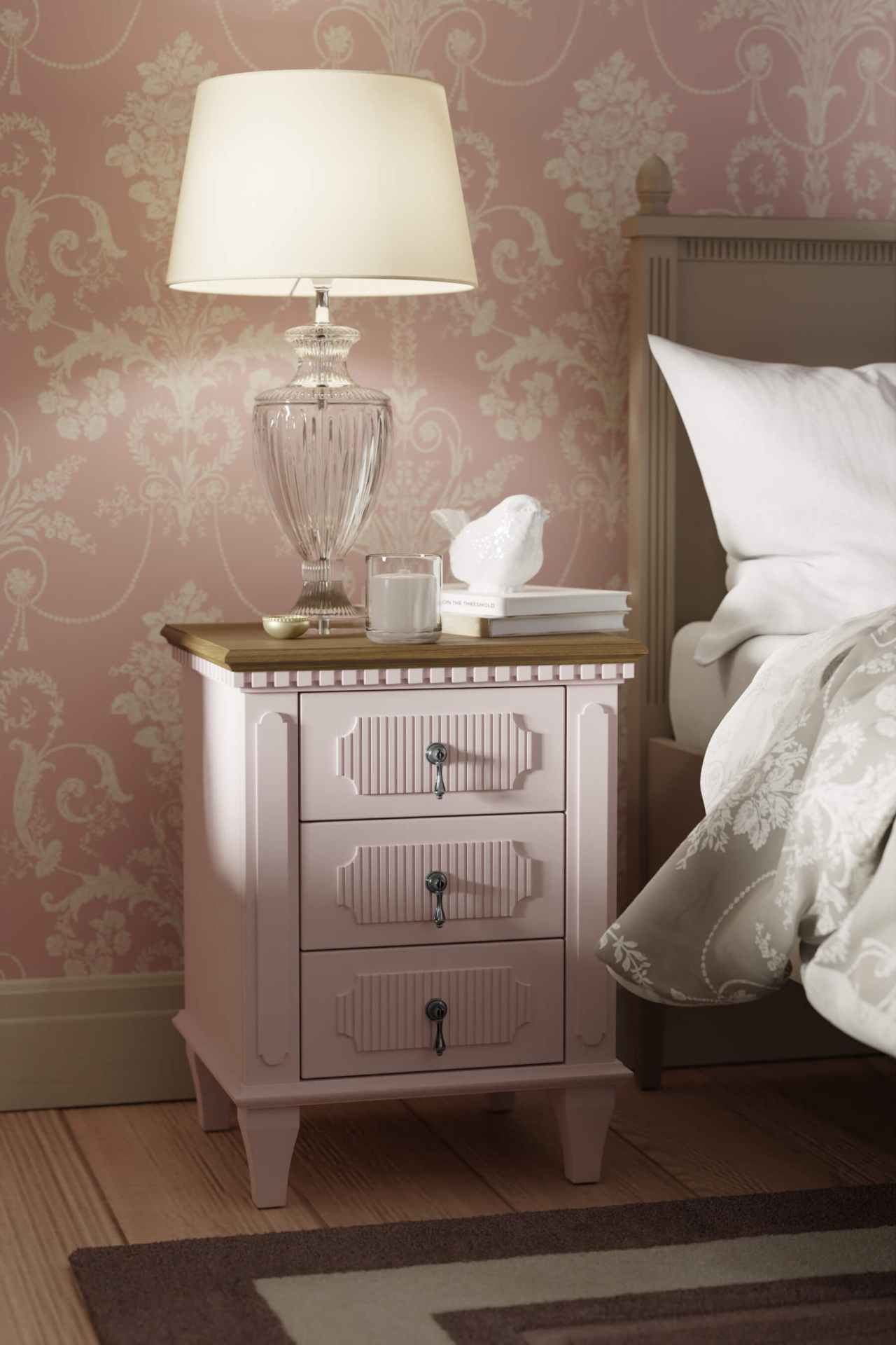 Barmouth – kommode/nattbord i rosa med patinert topplate