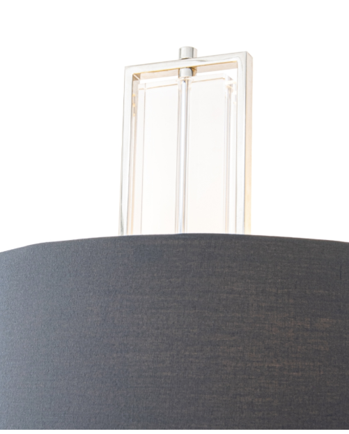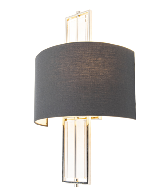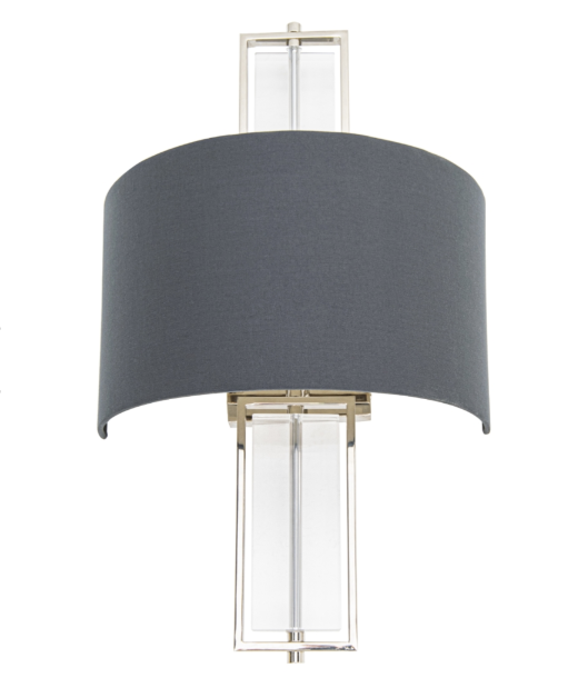 Beck vegglampe tilfører ethvert rom et elegant og sofistikert preg. Den vakre rammen i nikkel kombineres med et subtilt krystallelement og en koksgrå skjerm, som sprer lyset mykt og skaper en varm, innbydende atmosfære.