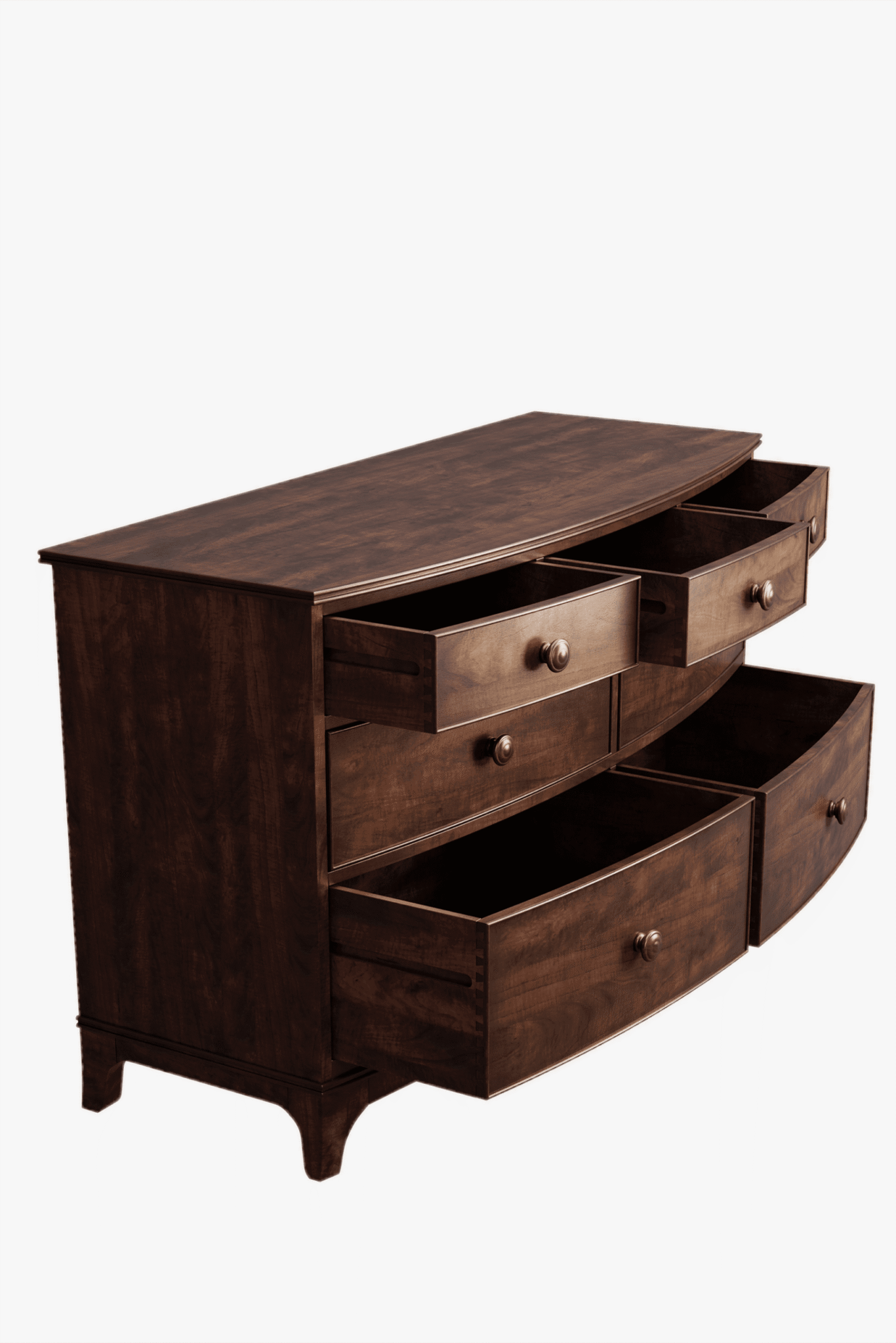 Denne praktiske kommoden med syv skuffer kombinerer funksjonalitet med et tidløst design, og tilfører rommet en varm og sofistikert sjarm.