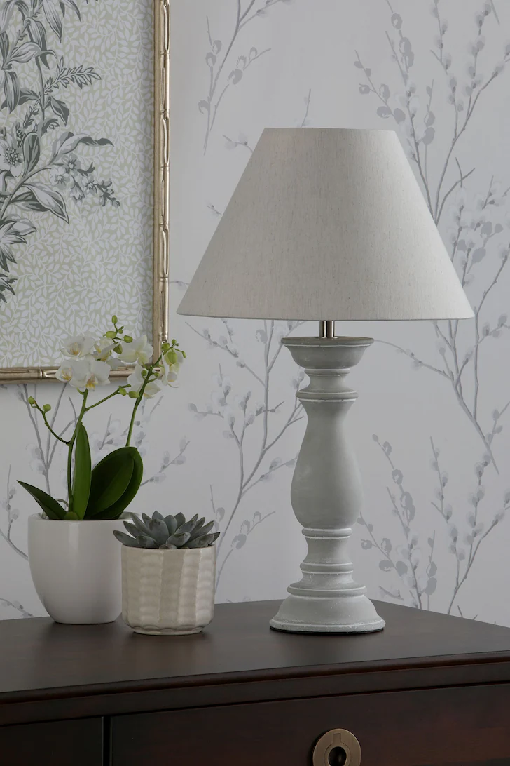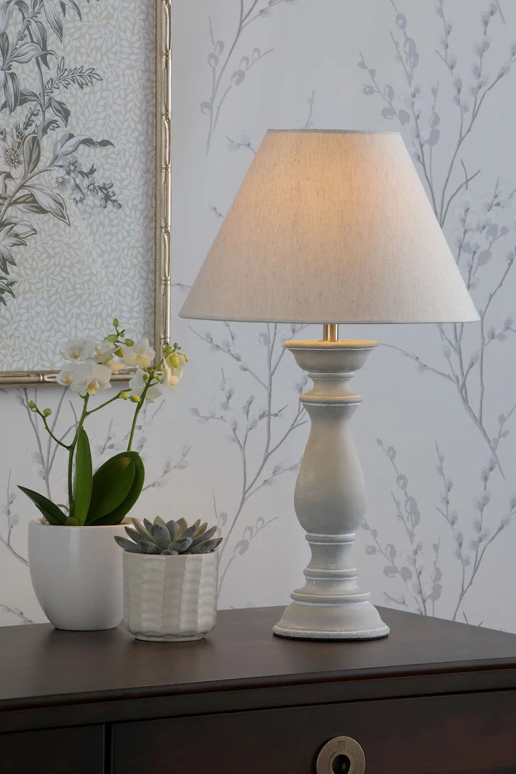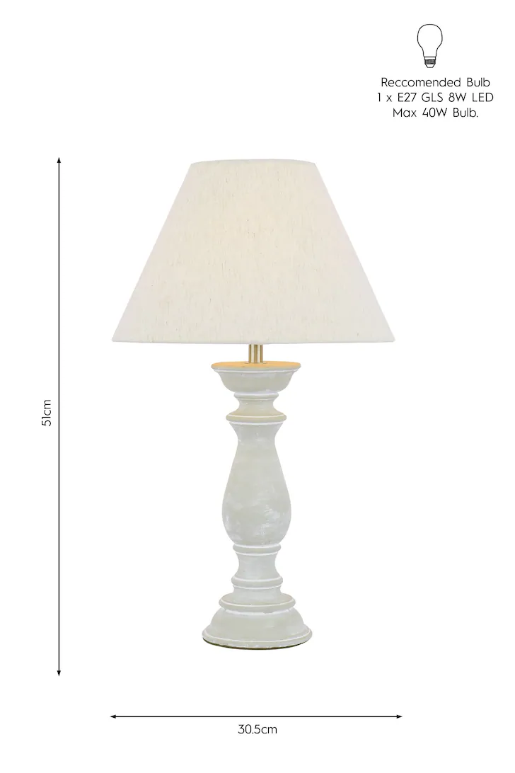 Chedworth bordlampen vil være et elegant og stilig tillegg til hjemmet ditt. Den har en betongstøpt base i en klassisk form sammen med en avsmalnende naturlig linskjerm. Pære følger ikke med; tar 1 x 40W maks ES GLS.