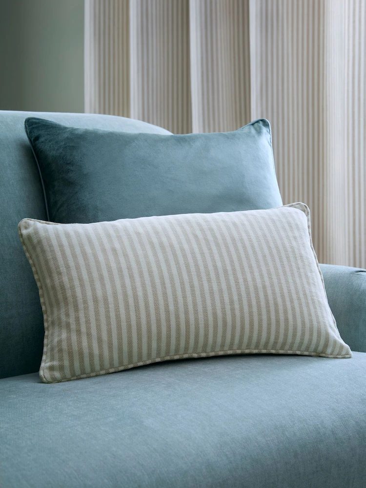 Denne sofistikerte puten i chenille-stripe mønster fra Laura Ashley tilfører eleganse til ethvert rom og komplementerer harmonisk både et moderne og tradisjonelt interiør. Perfekt for å løfte uttrykket i stue og soverom.