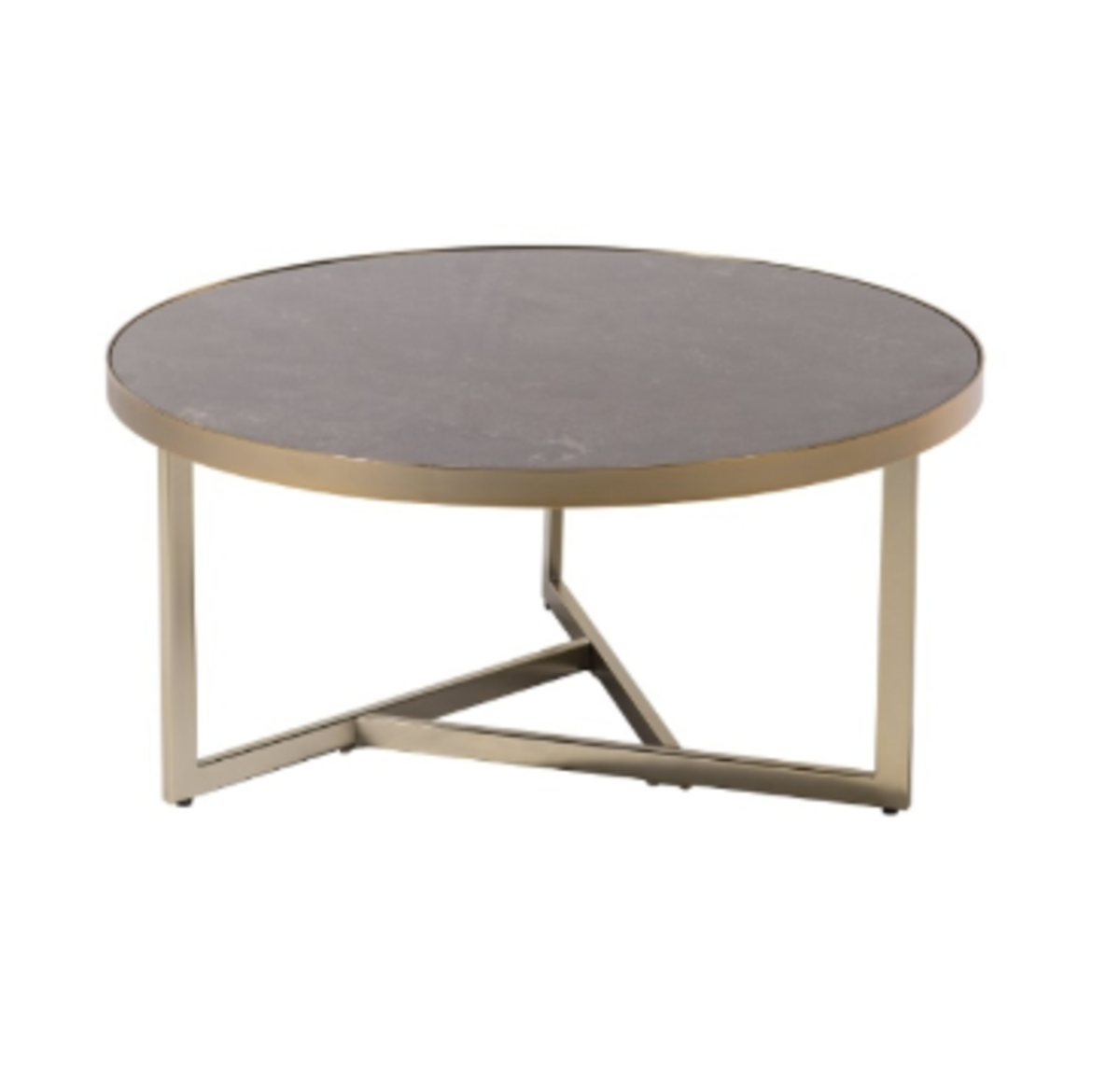 Moderne med en luksuriøs og tidløs følelse, er dette elegante runde salongbordet i champagnefarget metall og kaviarfarget , sort marmorplate.