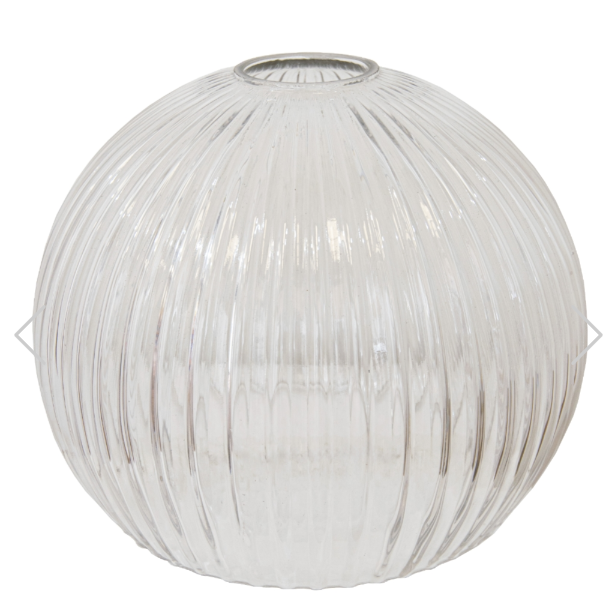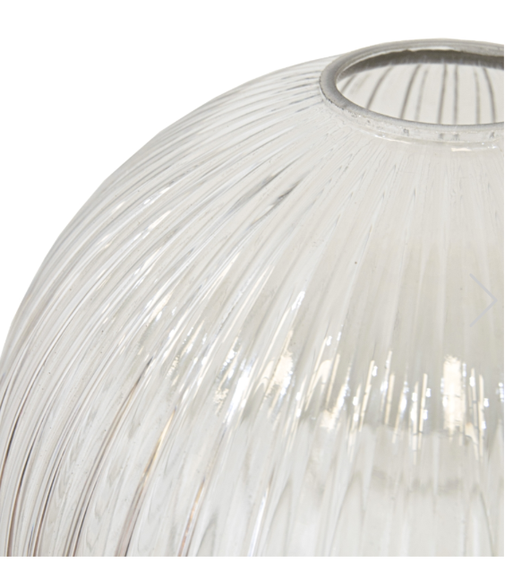 Ellyn lampeskjerm tilfører en myk form og delikate detaljer til belysningen. Den vakkert kuppelformede skjermen i glass har et subtilt rillet mønster som fanger og reflekterer lyset på en elegant måte, og skaper en taktil og levende overflate.