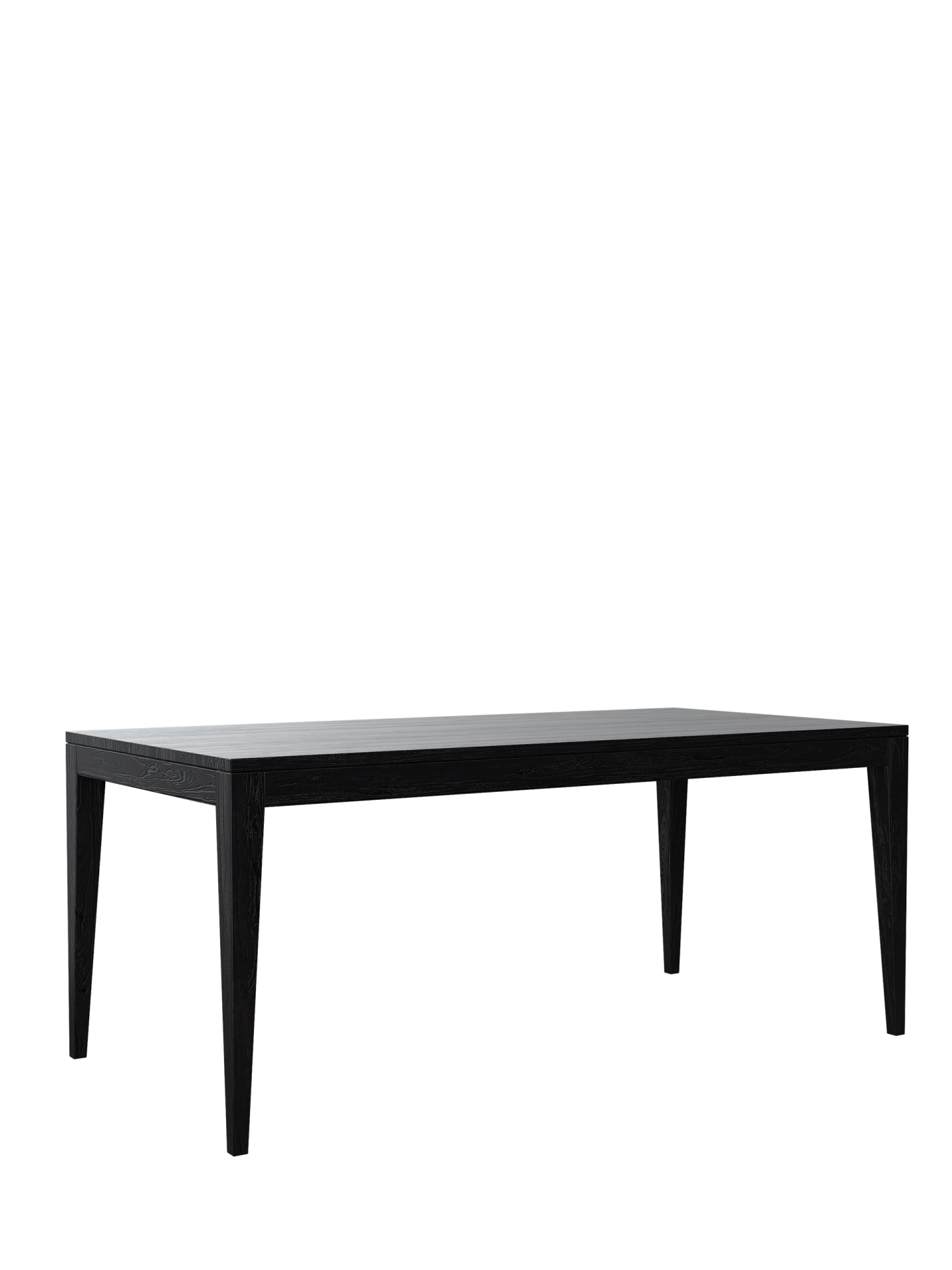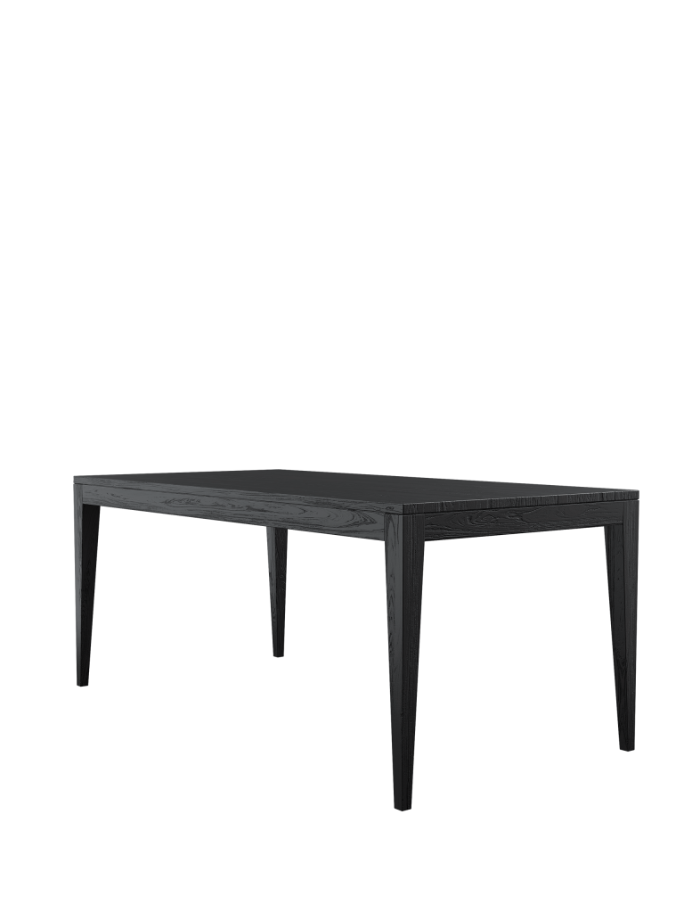 Bordet har forsiktig avsmalnende ben og moderne skyggehull, og er nøye konstruert av heltre alm og eikefiner. Overflatene er børstet for å fremheve treets naturlige tekstur, og ferdigstilt med en rik svart maling og klar matt lakk som gir langvarig beskyttelse og et elegant uttrykk.