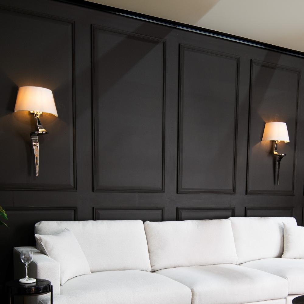 Ideell for stue, gang eller soverom, alene eller som par over sofa, seng eller konsollbord. Lampene finnes også i antikk messingfinish for et varmere, klassisk uttrykk, og kan kombineres med bord- og gulvlamper fra Enzo-serien for et helhetlig og gjennomført interiør.