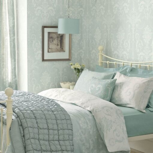 Ferdigsydde gardiner: Josette duck egg, lystett med pencil pleat