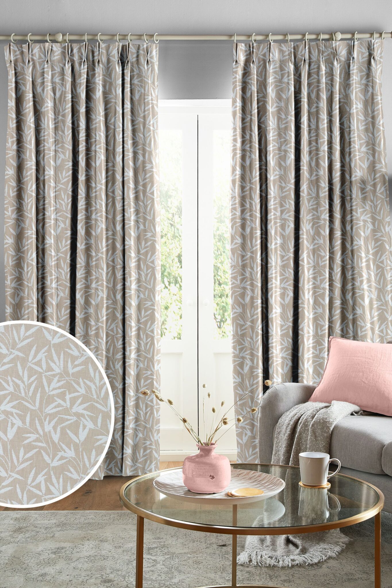 Gardinstoff: Willow leaf, blader i naturfarget chenille