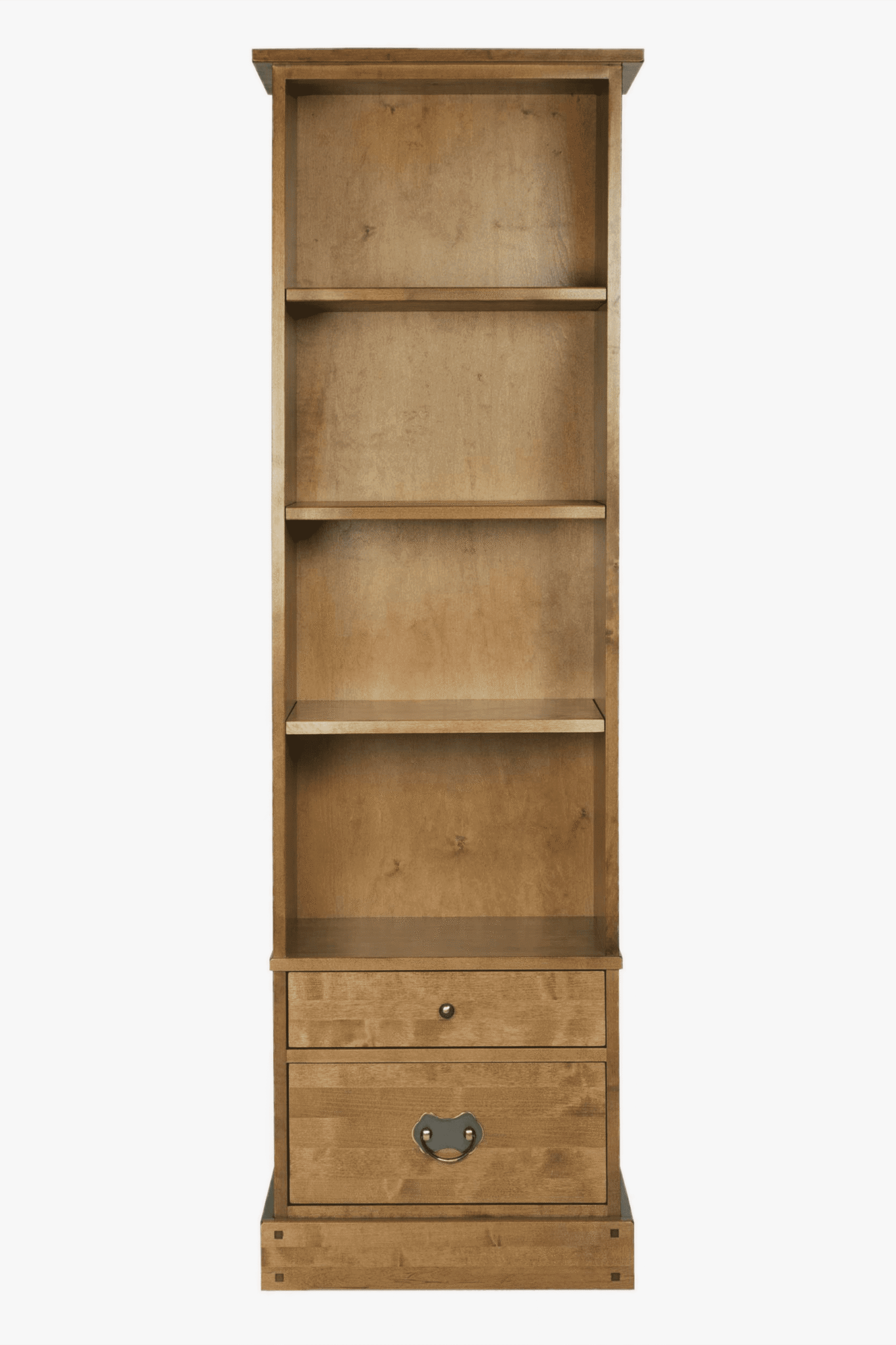 Garrat, enkel bokhylle med 2 skuffer i honningfarget bjørk