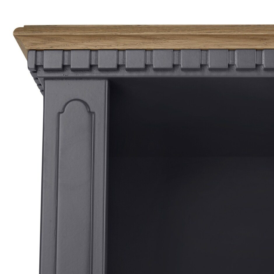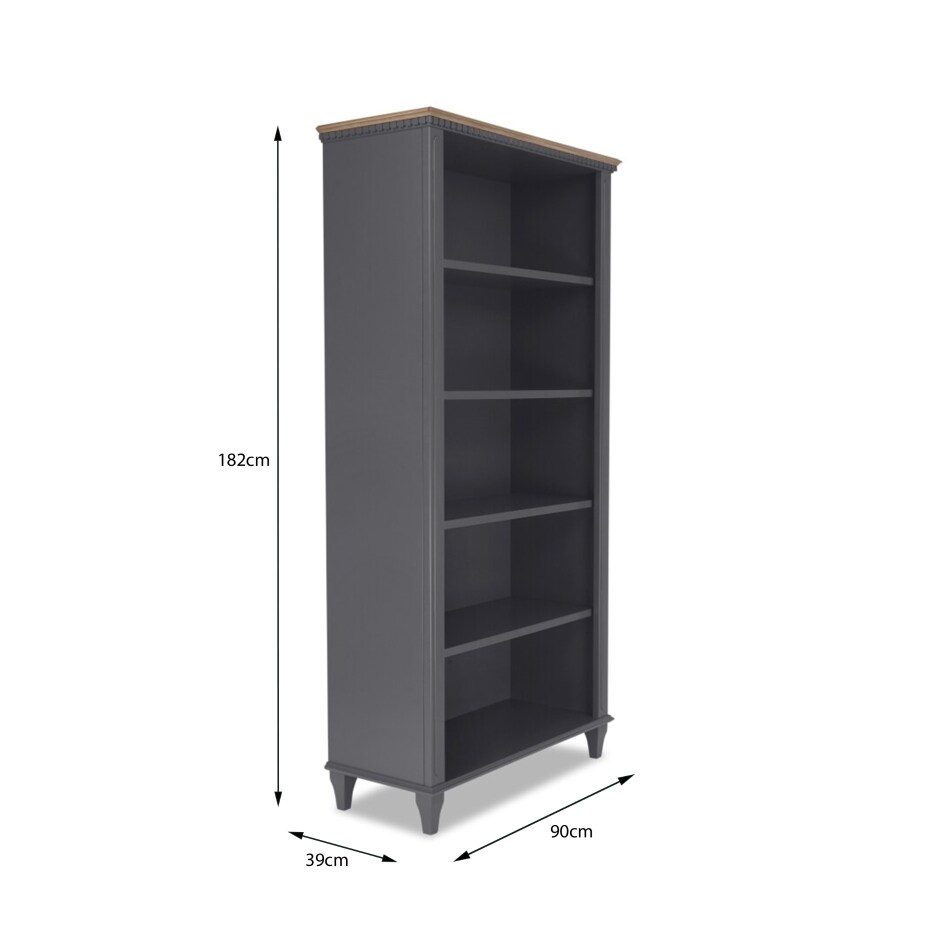 Hanover, vår nye møbelserie, landlig eleganse og spennende kontraster, Her en lekker bokhylle i koksgrått og eik.