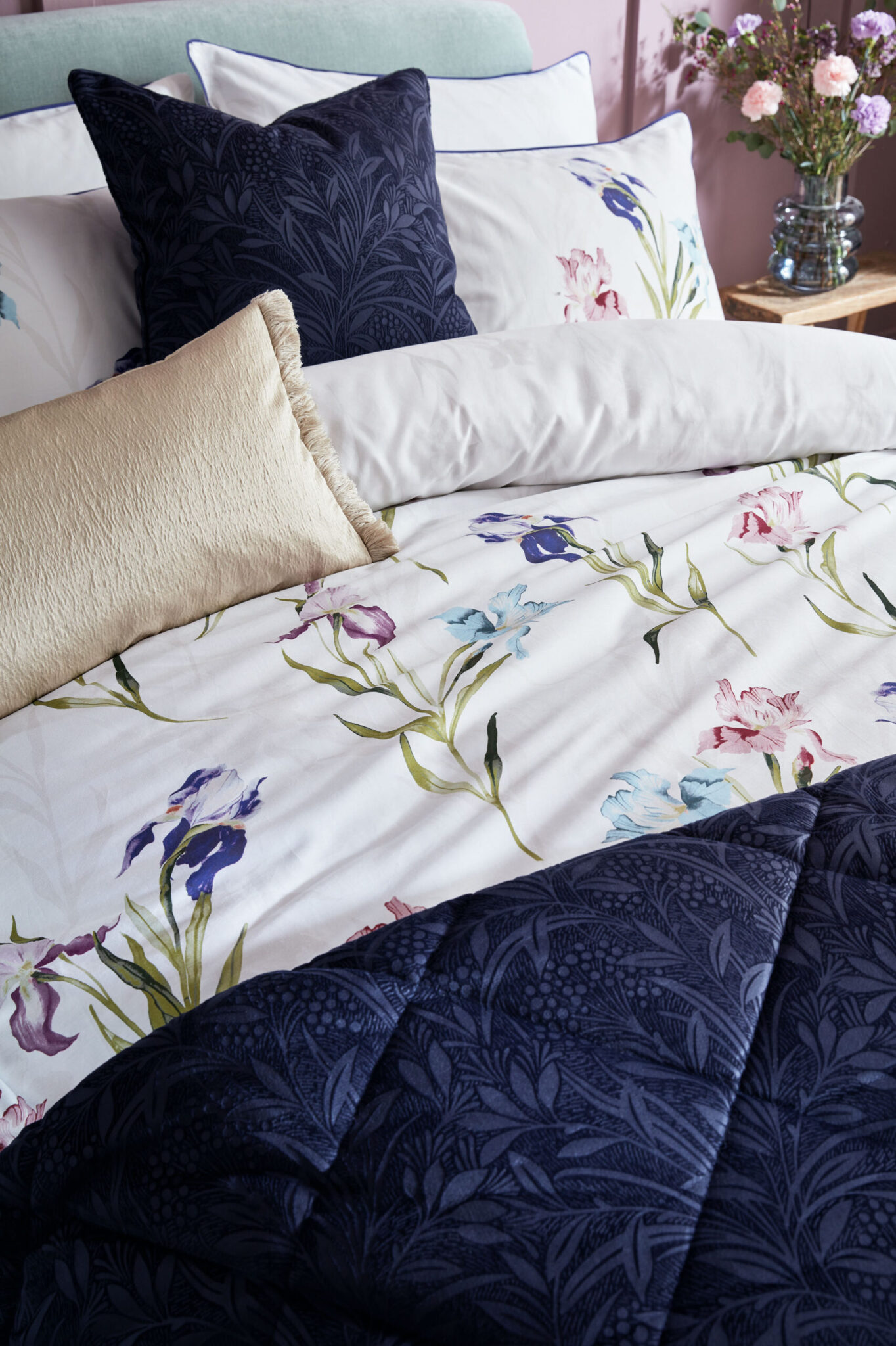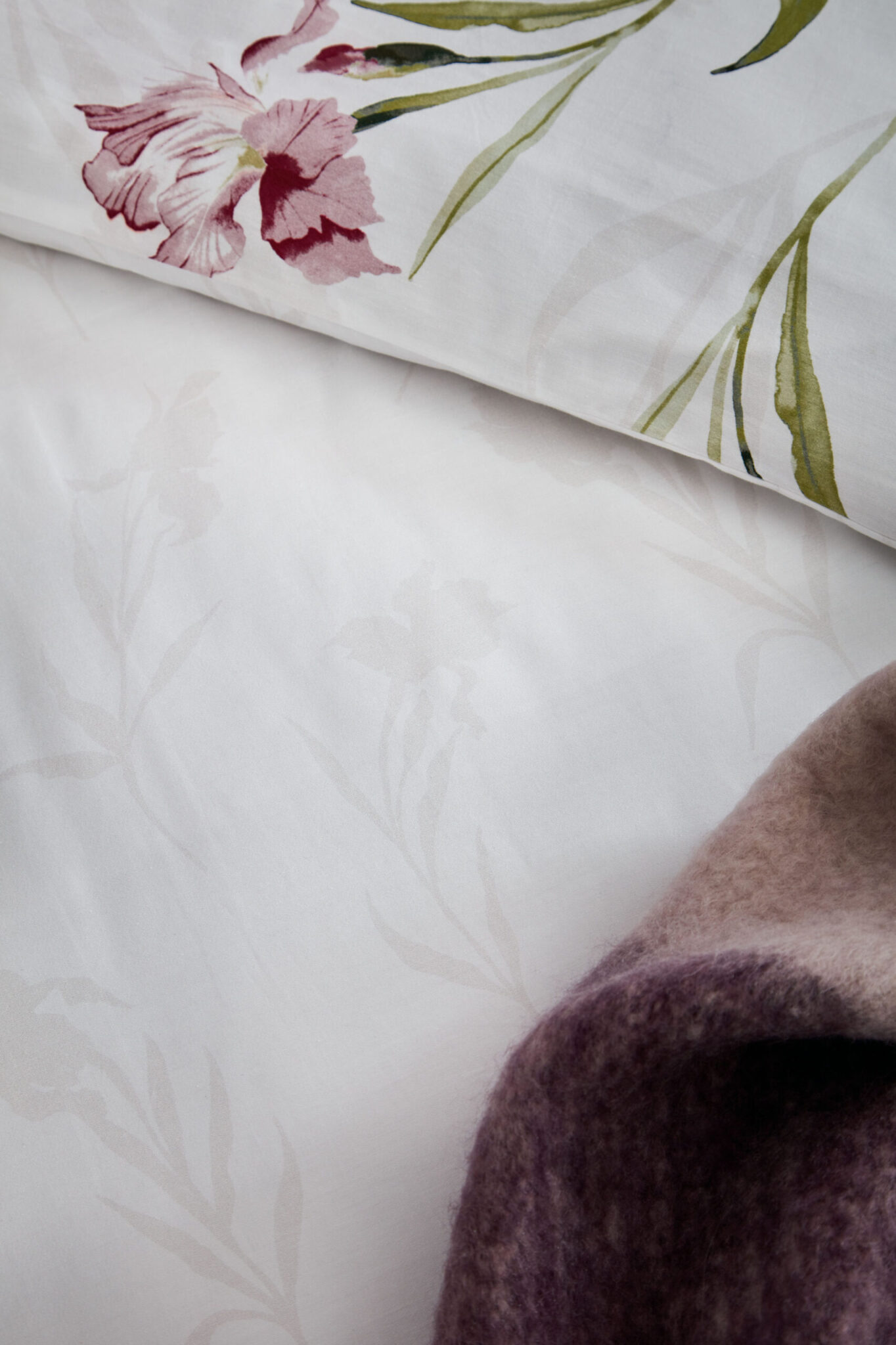 Hawling Irises, et elegant og delikat sengesett fra Laura Ashley. Med iriser i lekre lillatoner som spres over dynetrekket. Baksiden har delikate siluetter av iriser som gir sengesettet et subtil eleganse.