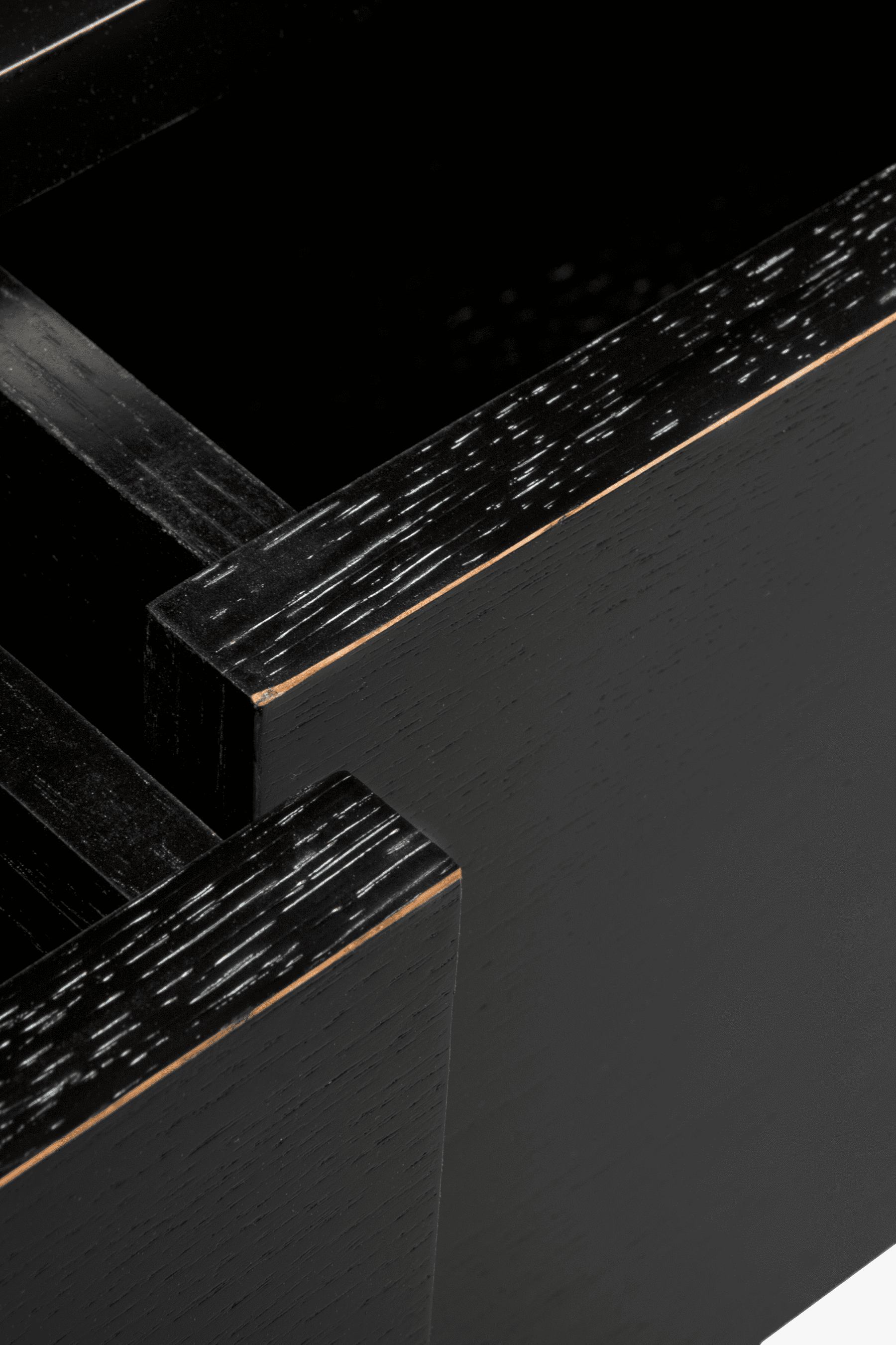 Henshaw, tidløs bokhylle med to skuffer i sort