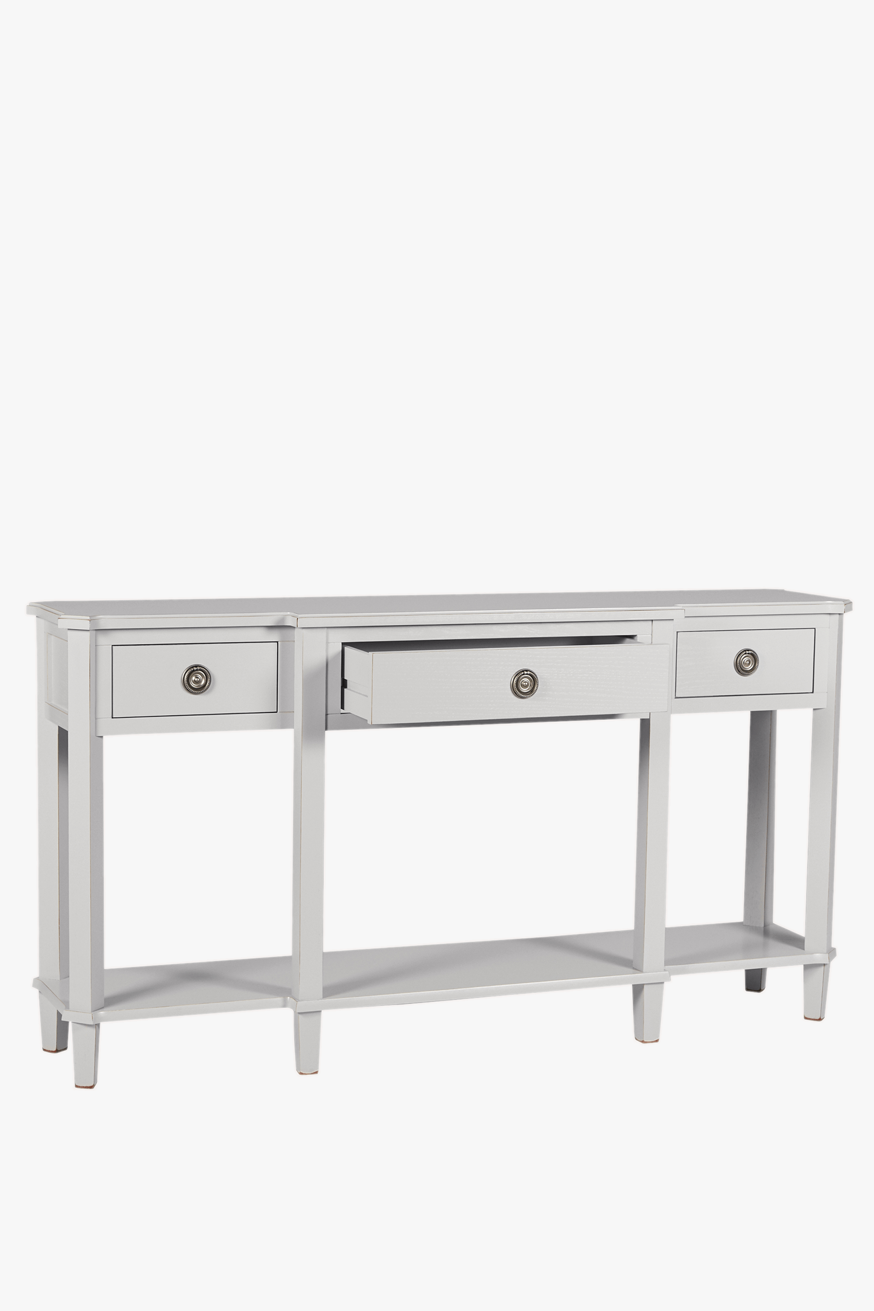 Henshaw XL konsollbord i lys stålgrå med 3 skuffer