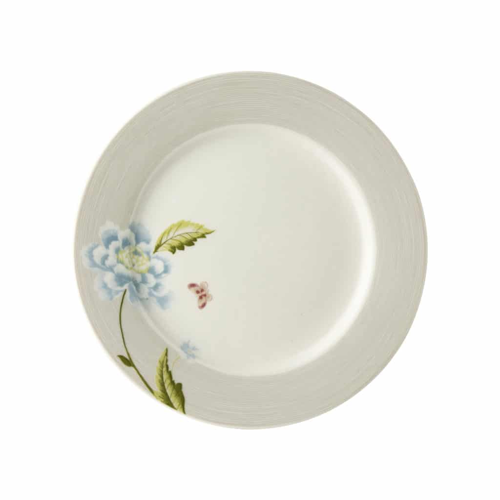 Vårt lekre Heritage servise, her med asjett til kake, frokost eller som forrett i cobbelstone/pinstripe, lekkert i kombinasjon med elveden fuglemønster til borddekking.
