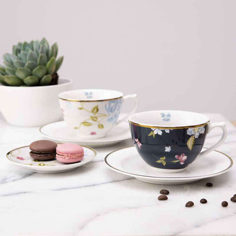 Laura Ashley Heritage Collectables  Cup and Saucer in Fine Porcelain, 26 cl. Enjoy high tea at home with these bone china cups and saucers from the Heritage Collectables range. Inspired by vintage floral prints from the archive, reworked with a contemporary twist, this beautiful hand-finished set will certainly make an impact when entertaining. Exquisitely crafted, the saucer and cup rims are delicately outlined with a gold-tone trim. Mix and match them with other items from the range to create a porcelain bouquet.
