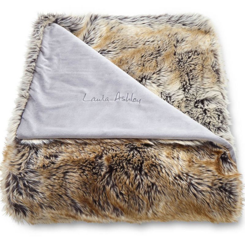 A sumptuously soft chocolate fur throw, the Hexham throw with velvet velour reverse featuring a beautifully embroidered Laura Ashley signature is perfect for creating a warm and cosy look in any room.