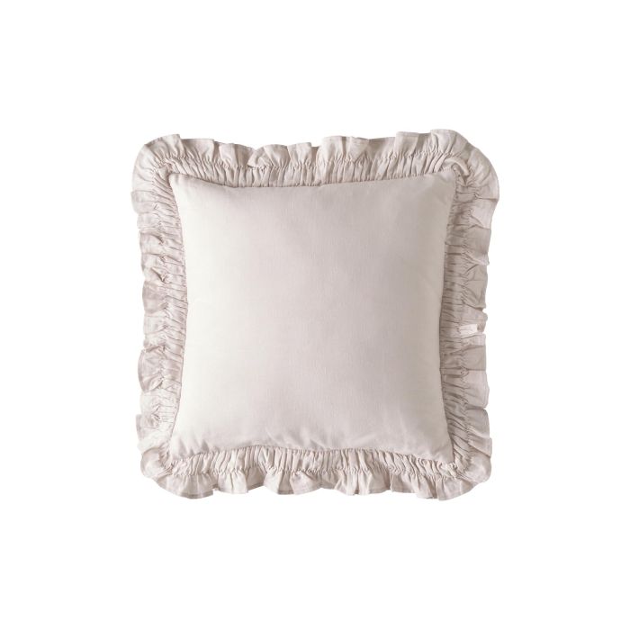 Med en bomull/lin pute i lyserosa fargetone, så får du en soft og delikat farge inn i sofa eller seng. Den er både sart og frisk i fargeuttrykket.