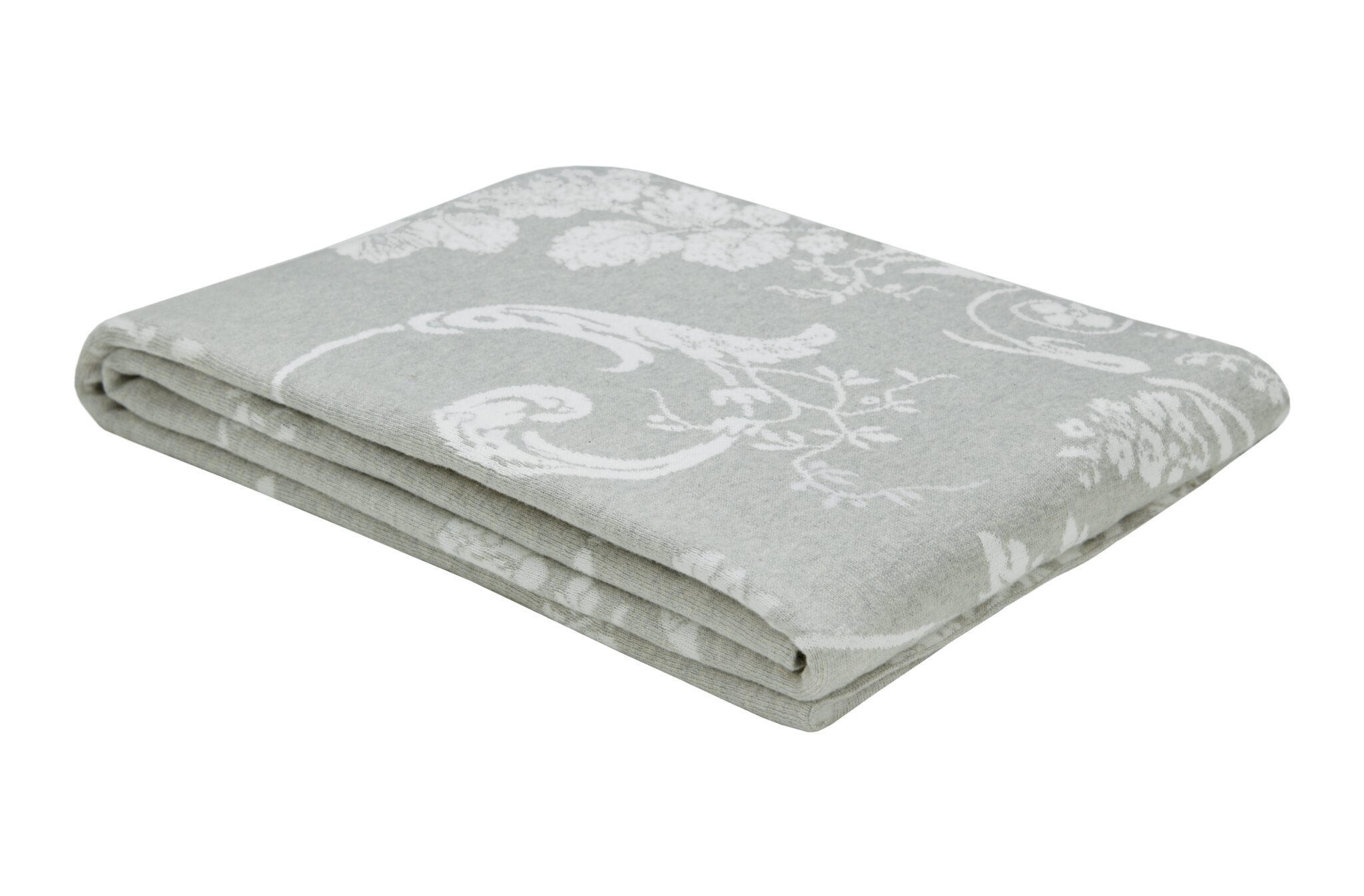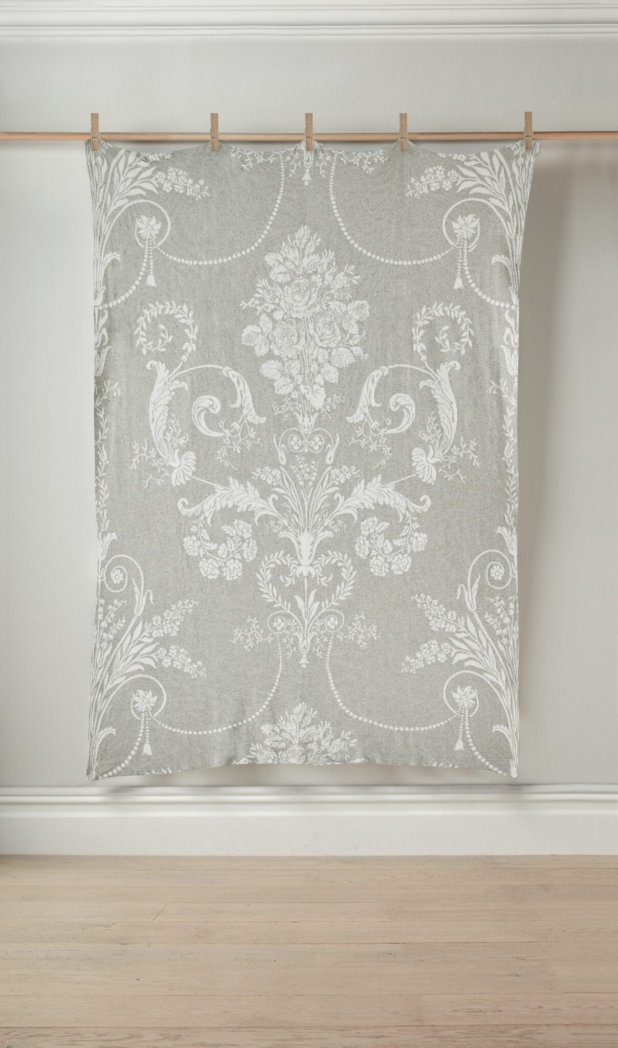 Josette, vårt tidløse og klassiske damaskmønster, her som et delikat bomullspledd i stålgrått, et mykt og vakkert pledd til hjemmet.