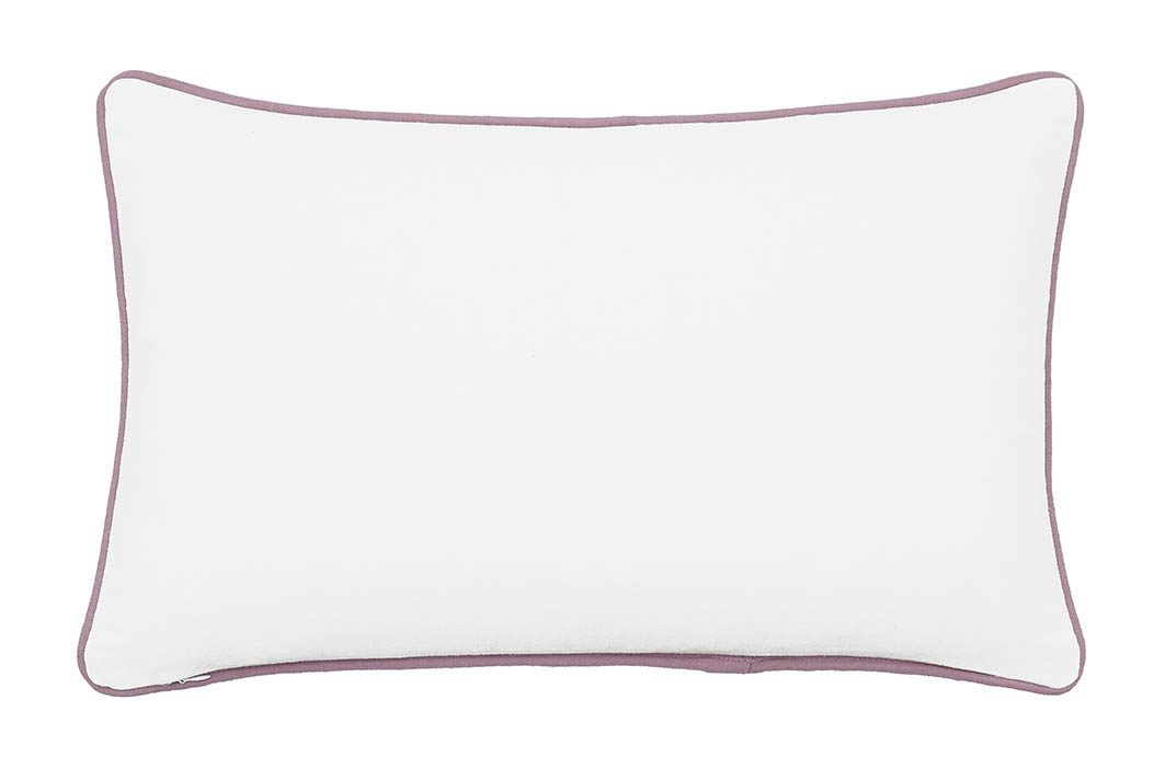 Printed onto 100% cotton with embroidery details, this cushion has been coloured in soft lilacs and greens bringing the outside in.