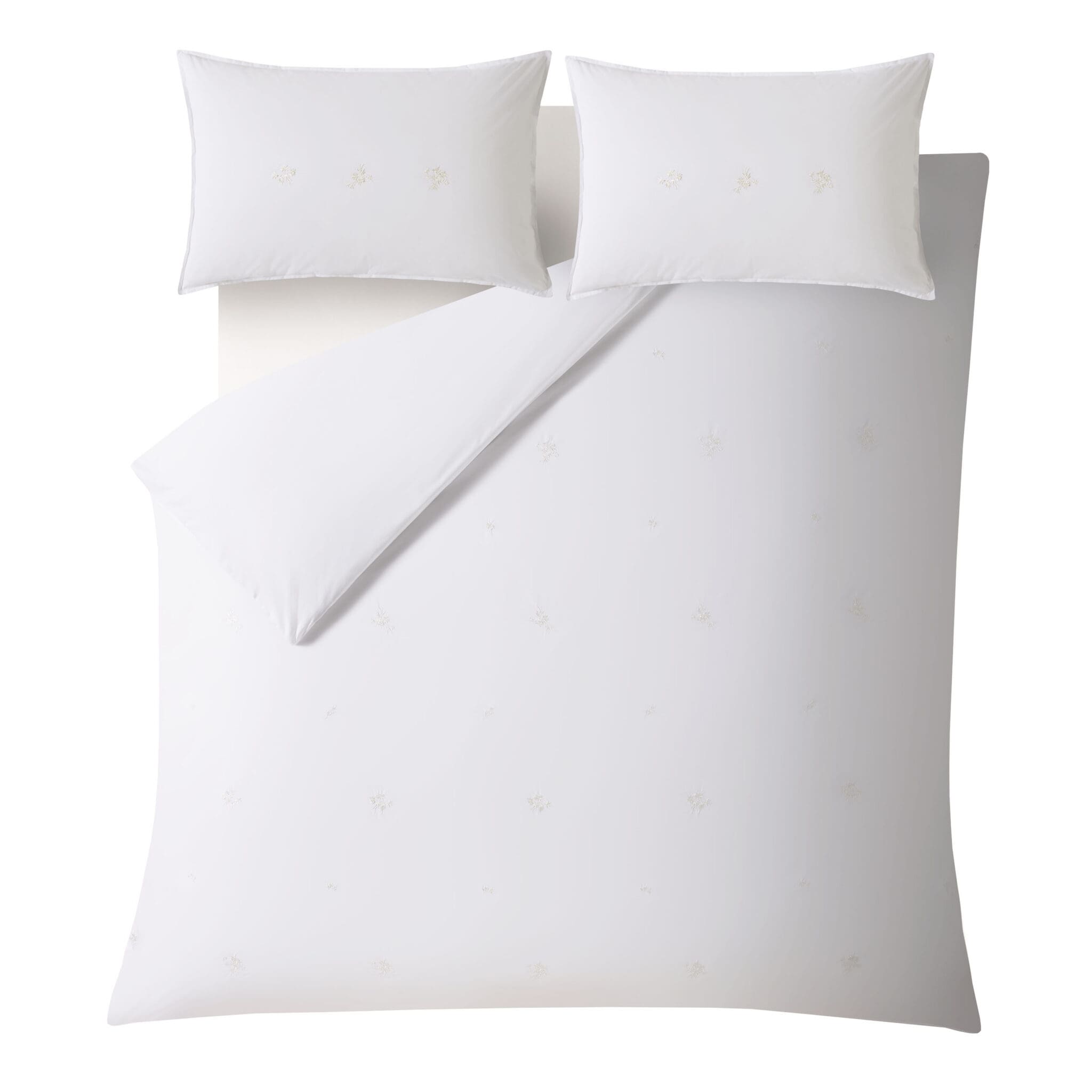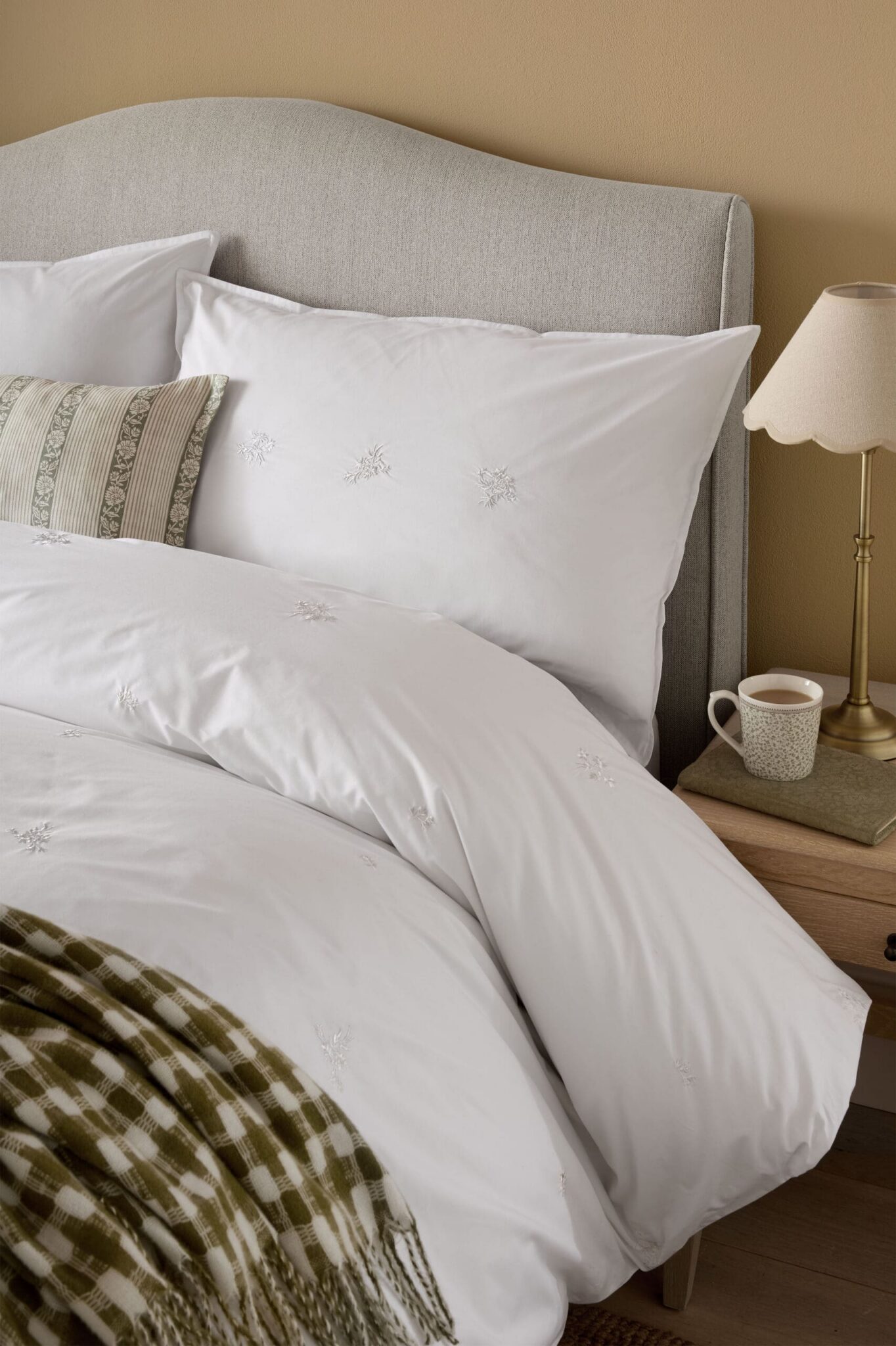 Keeleigh Posy er et subtilt og romantisk sengesett fra Laura Ashley – inspirert av den nostalgiske cottage core-estetikken. Det rene, hvite uttrykket fremheves av delikate broderier med stiliserte blomster og blader i en elegant offwhite-tone som gir en diskré og raffinert dekorativ effekt.