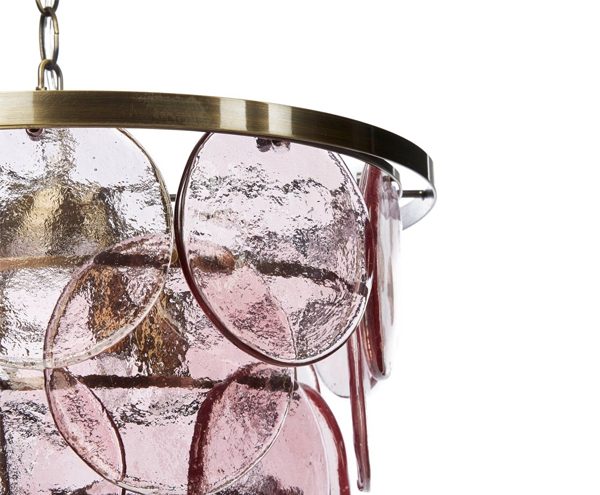 Gorgeous blush glass discs and an antique brass finish make this piece perfectly pretty. A feminine finish to your favourite spaces, the Kiarna Light adds a pop of colour to any room.