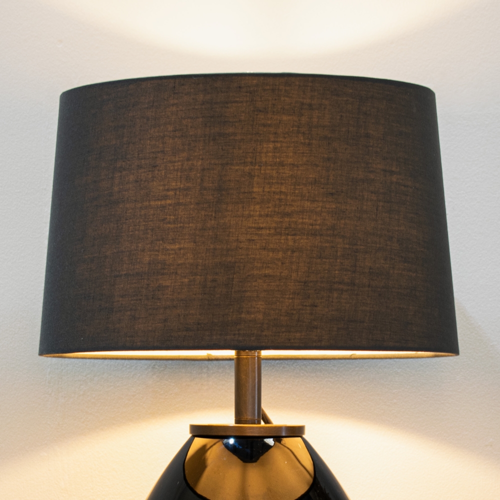 Denne mellomstore trommel lampeskjermen har et rikt kull grått stoff utside kombinert med en perlemorsfarget innside som myker opp og reflekterer lyset vakkert.