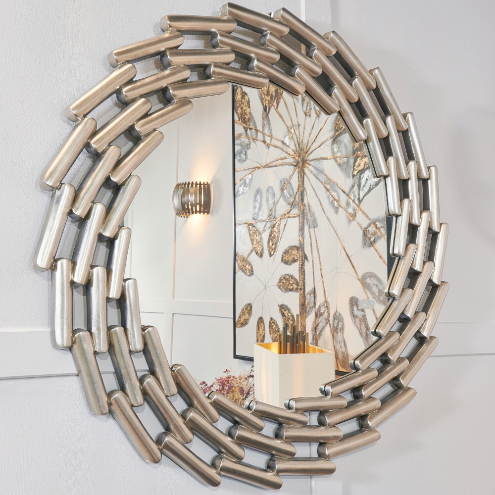 Du vil bli trollbundet av dette nydelige runde sølvbladspeilet når du henger det opp og ser det vakre speilbildet.