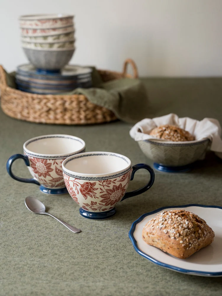 Nyt en generøs kopp te eller kaffe med Hedingham Terracotta stort krus 43 cl – en vakker kombinasjon av klassisk eleganse og moderne funksjonalitet. Kruset er dekorert med det ikoniske Hedingham-mønsteret, inspirert av tradisjonell blokktrykk-teknikk, og bærer seriens tidløse og gjennomførte uttrykk.