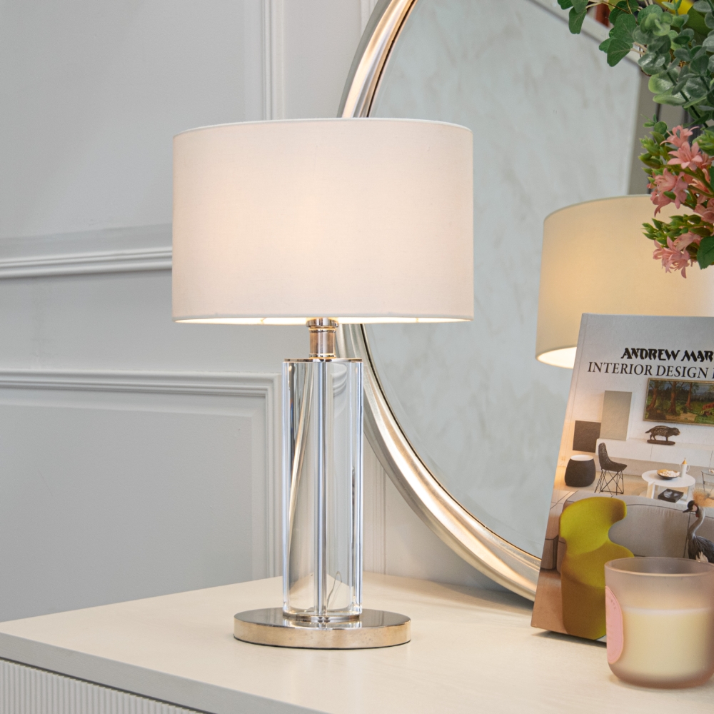 Lisle bordlampe i krystall og nikkel – med skjerm