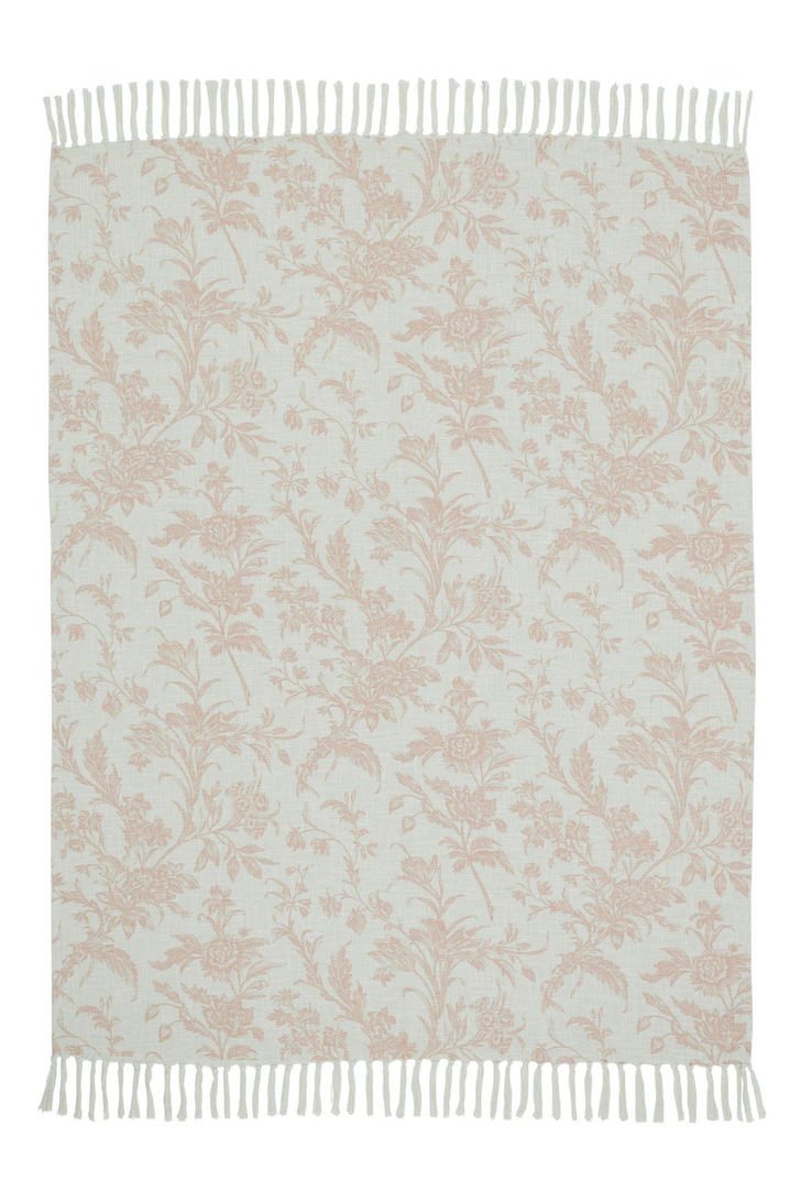 Lloyd, mønstrete bomullspledd i pudderrosa.